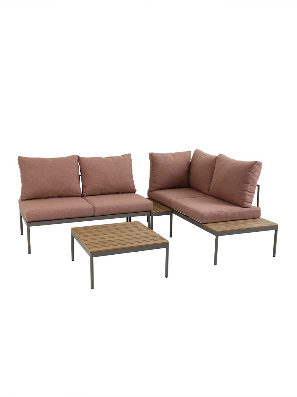 Komplekto sudėtis: kampinė sofa,kavos staliukas ir šoninis staliukas.