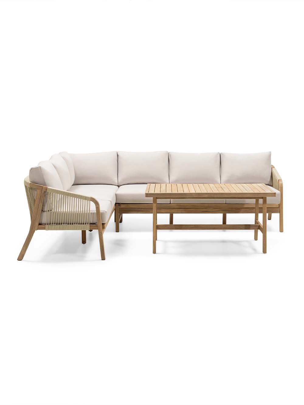 Komplekto sudėtis: kampinė sofa ir stačiakampis stalas.