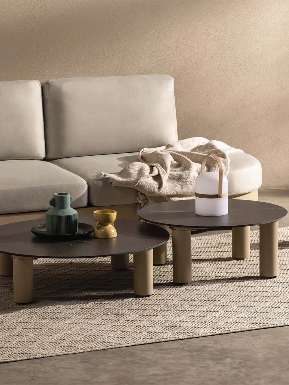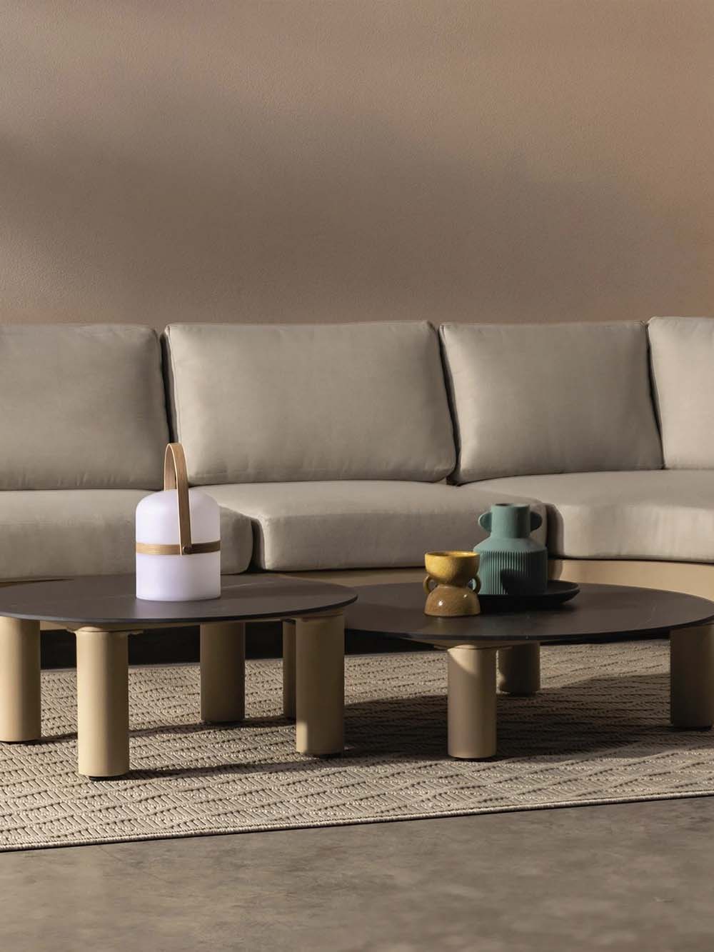 Komplekto sudėtis: kampinė sofa ir 2 kavos staliukai.
