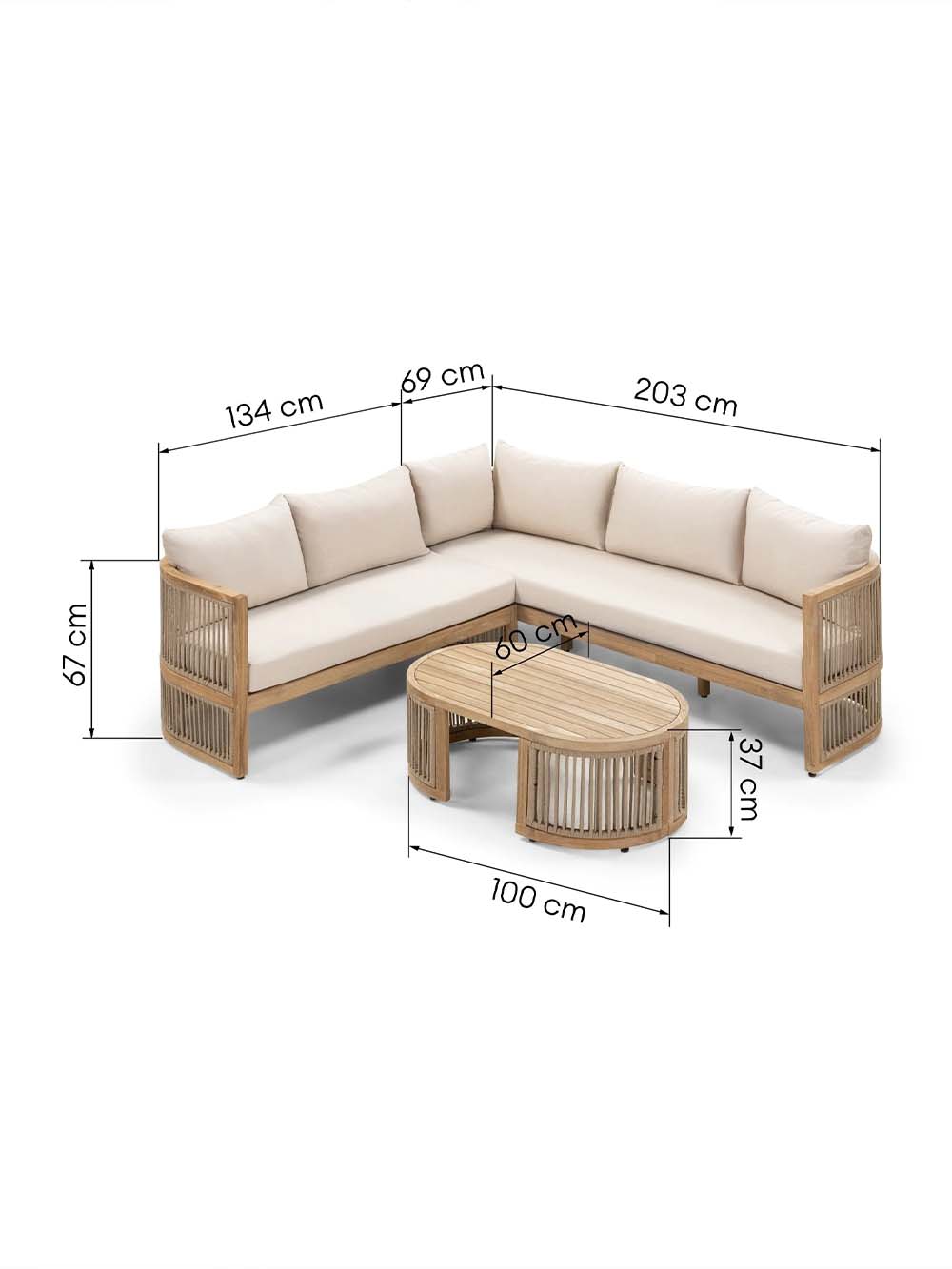 Komplekto sudėtis: kampinė sofa ir kavos staliukas.