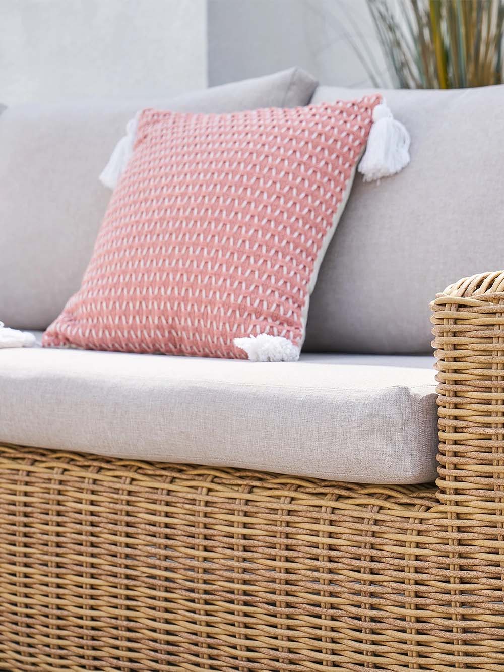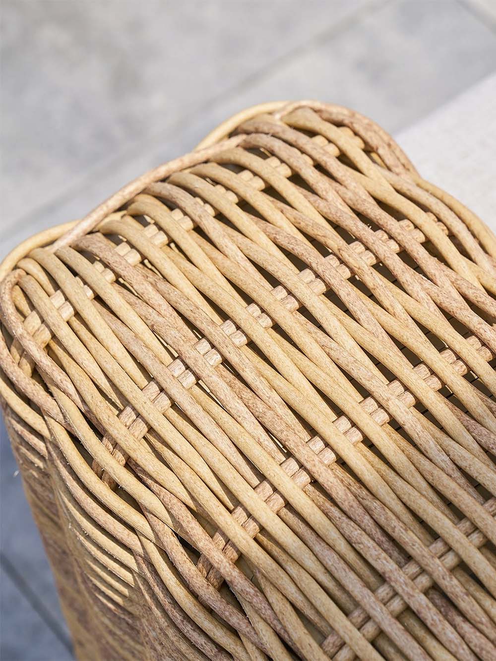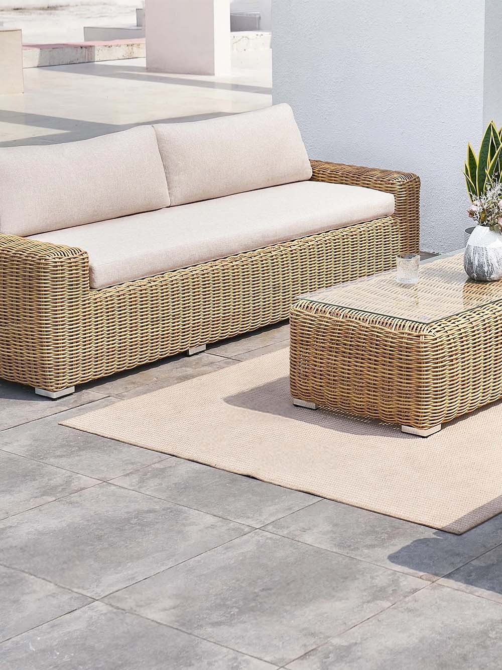 Sofos ir fotelio korpuso medžiaga: pintas, lauko sąlygoms atsparus dirbtinis ratanas.