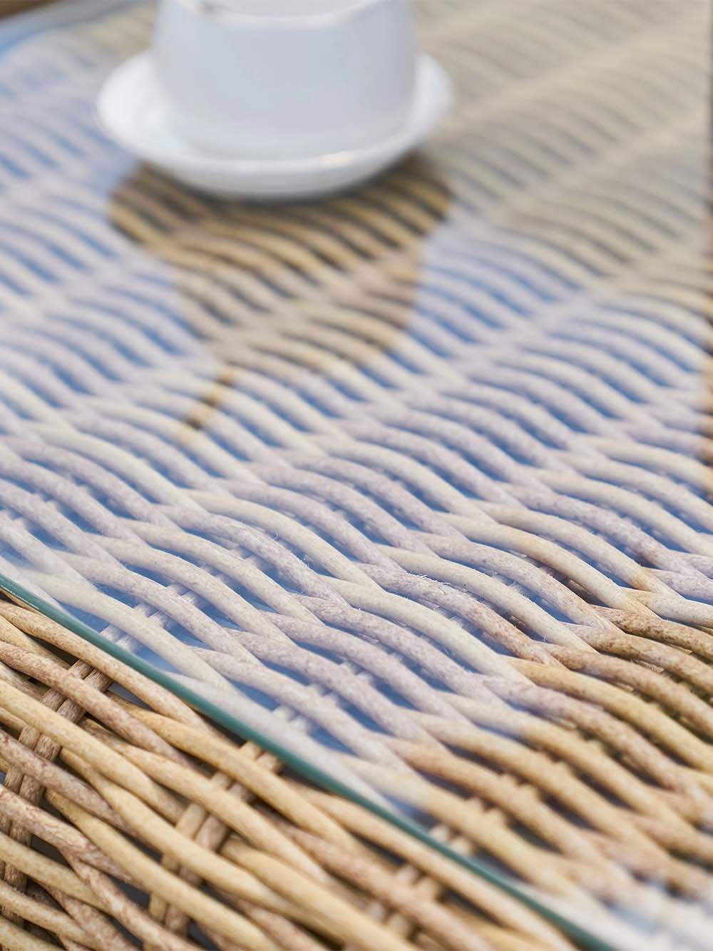 Stalo korpuso medžiaga: pintas, lauko sąlygoms atsparus dirbtinis ratanas.