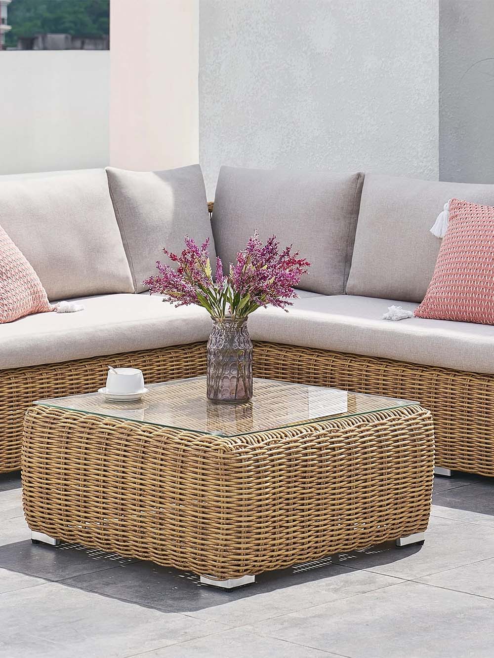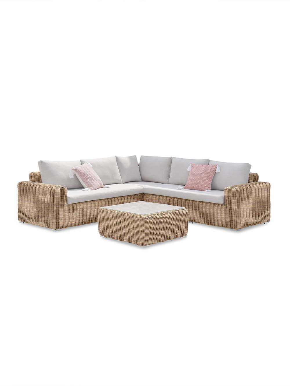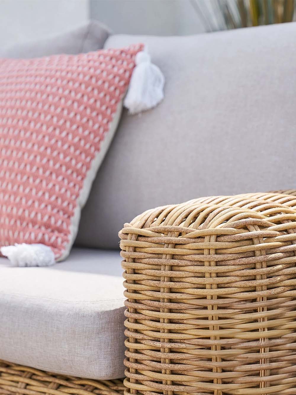 Sofos korpuso medžiaga: pintas, lauko sąlygoms atsparus dirbtinis ratanas.