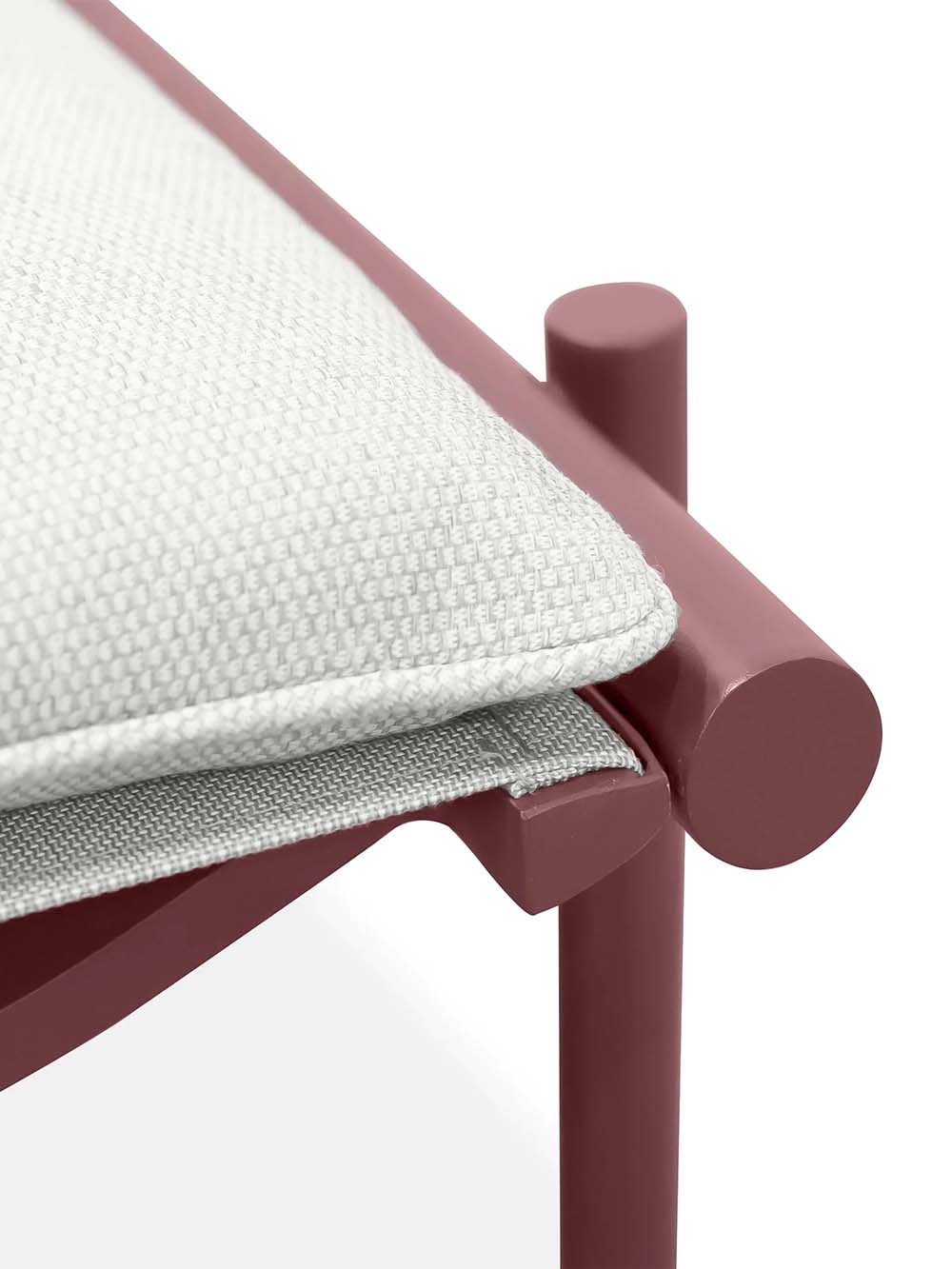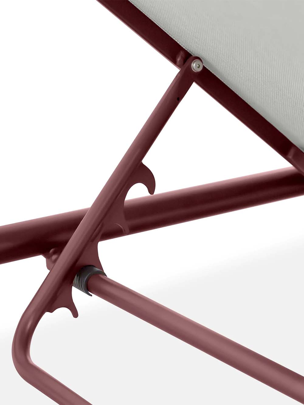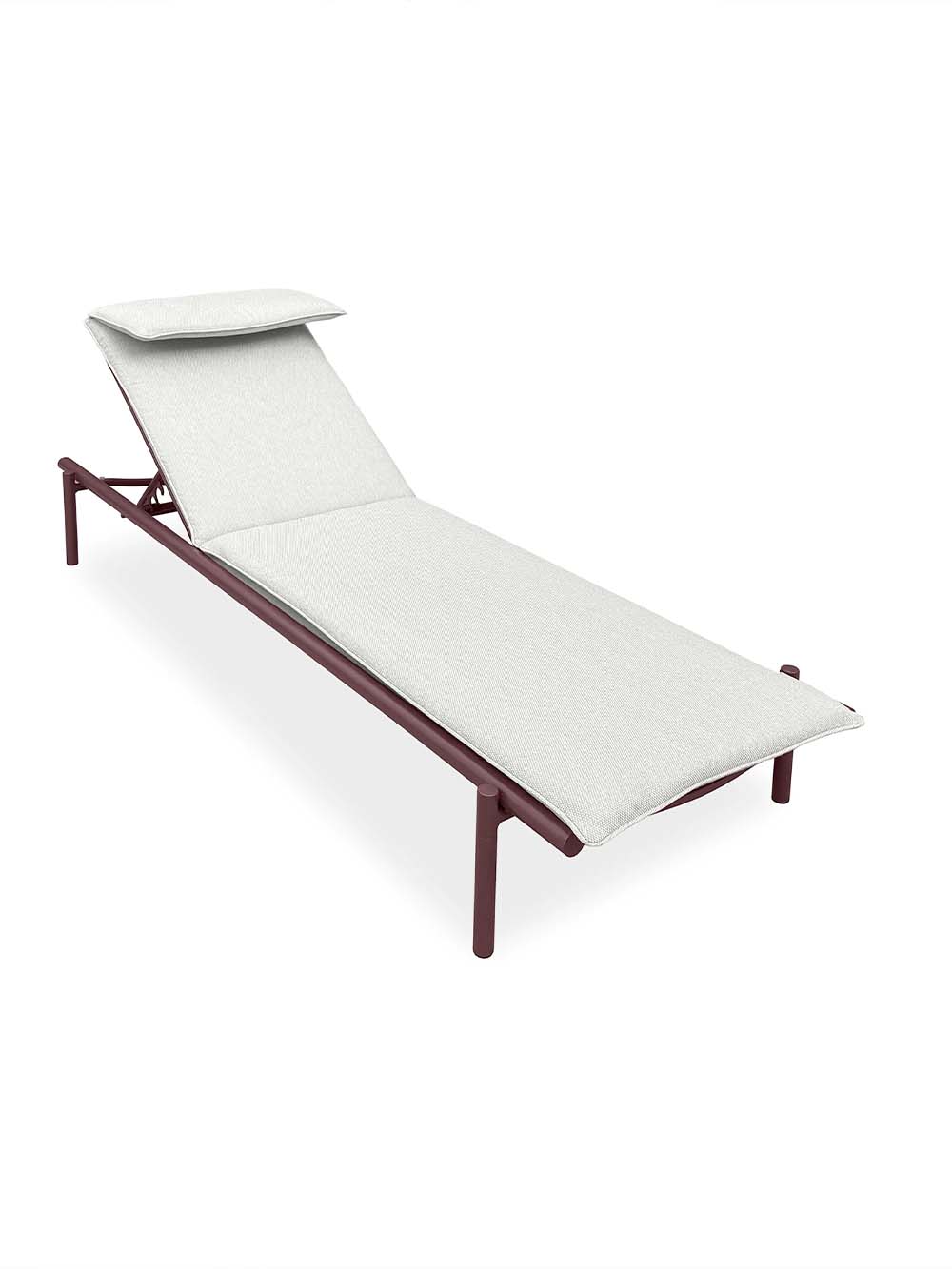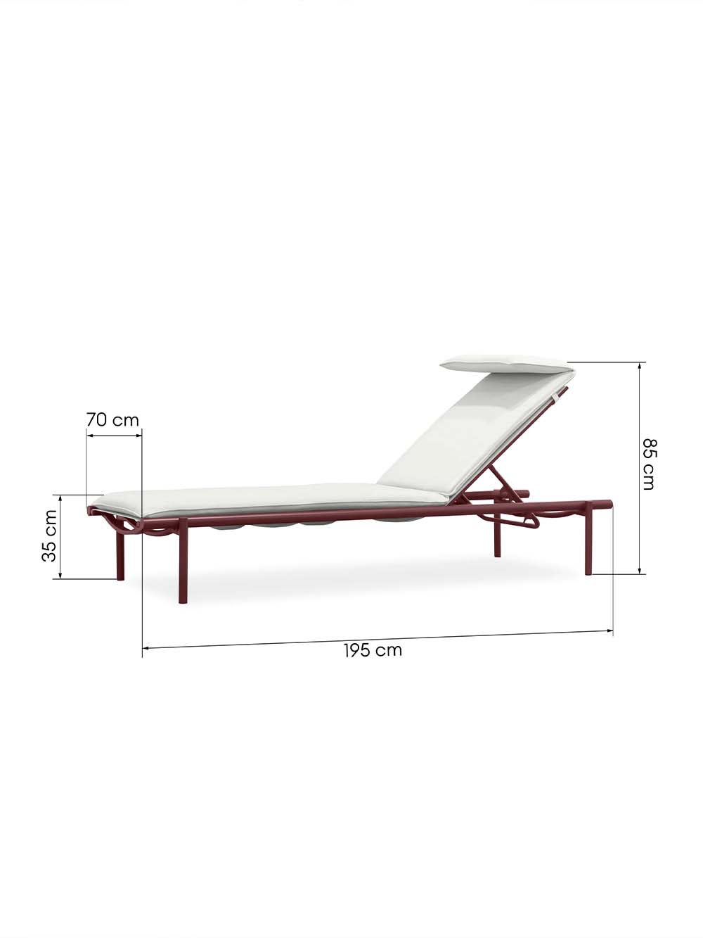 Saulės gultas Amore – minimalistinio dizaino, lengvas, tačiau tvirtas baldas. Rausvai rudos spalvos aliuminio konstrukcija tampa ryškiu erdvės akcentu, o šviesios pagalvėlės kuria harmoningą ir jaukų derinį. Integruota galvos atrama ir reguliuojamas atlošas leidžia mėgautis komfortišku poilsiu terasoje, balkone ar sode.