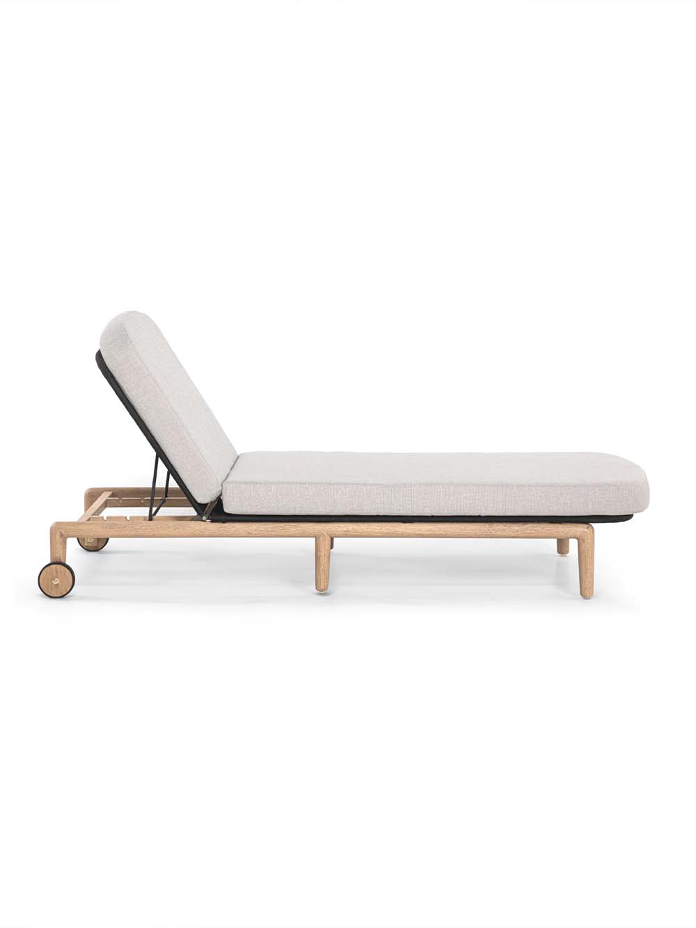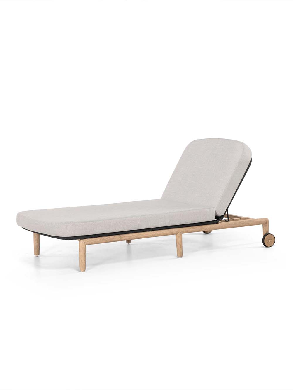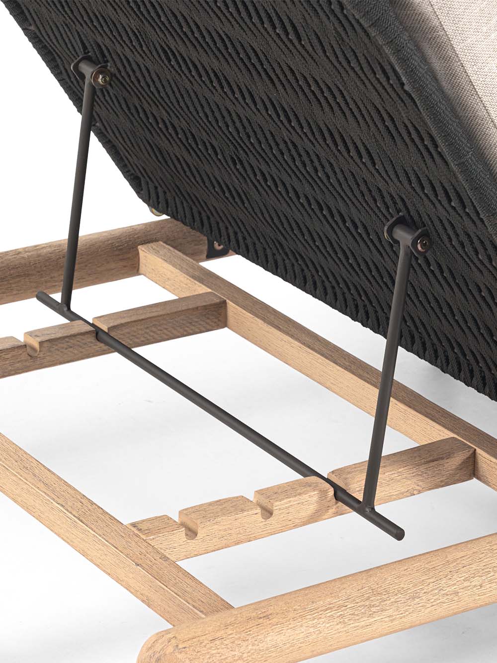 Saulės gultas Nusa – modernaus dizaino lauko baldas, derinantis natūralią estetiką ir komfortą. Akacijos medienos ir plieno konstrukcija suteikia tvirtumo, o iš patvarios virvelės pintas pagrindas papildo bendrą dizainą. Smėlio spalvos pagalvė užtikrina komfortą, o reguliuojamas atlošas leidžia pasirinkti norimą padėtį. Ratukai užtikrina lengvą gulto perkėlimą, todėl tai puikus pasirinkimas lauko poilsio zonai.