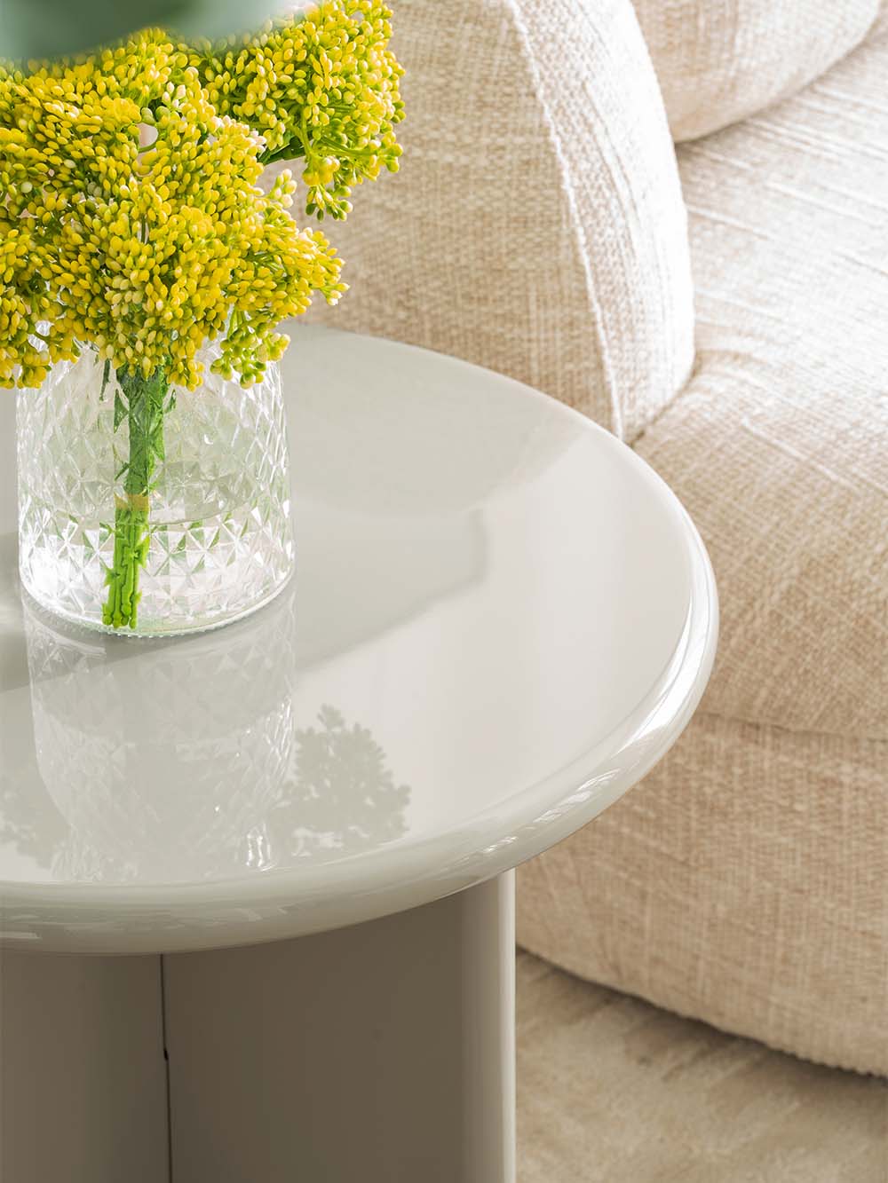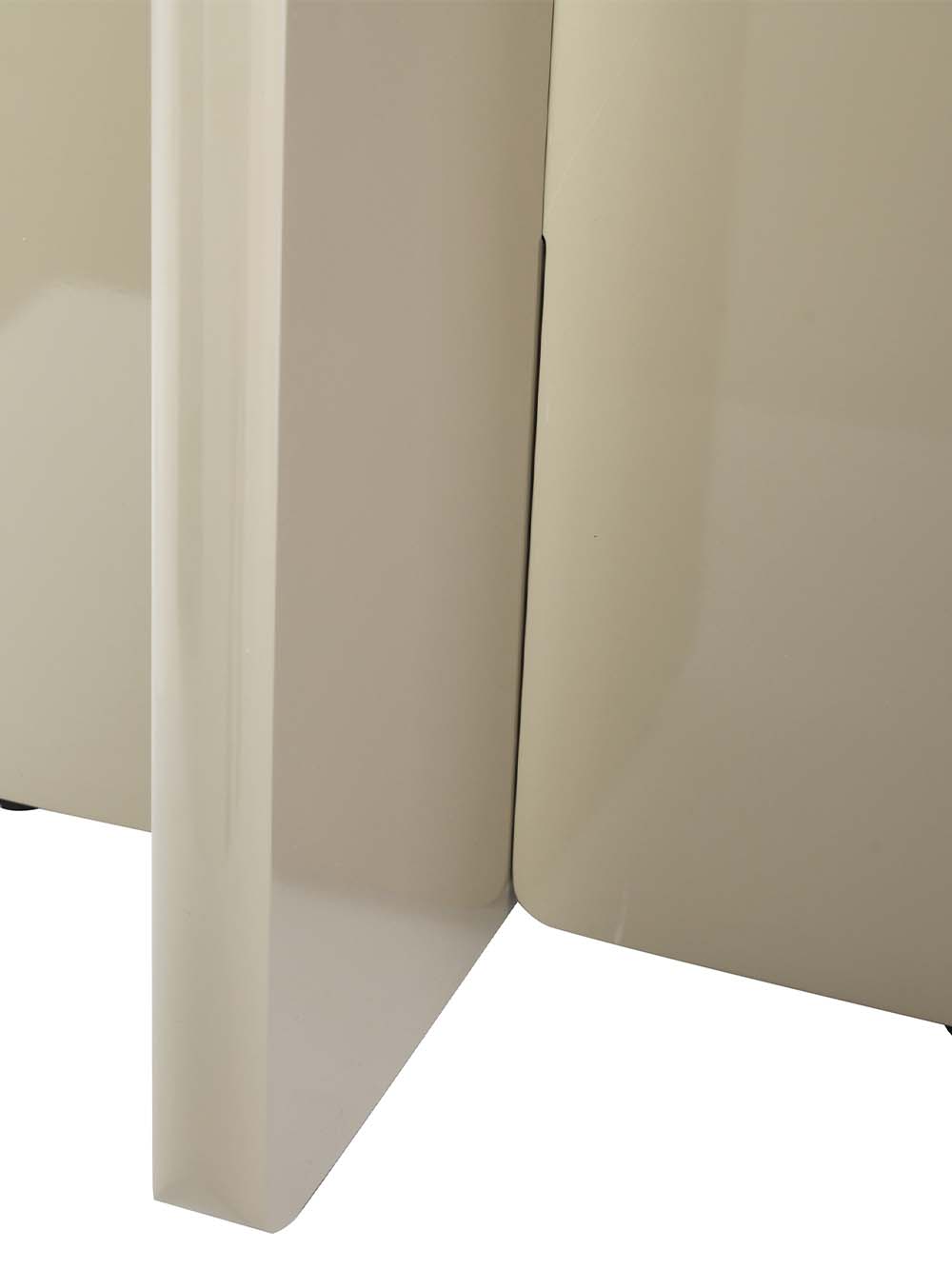 Priežiūra: Blizgūs paviršiai reikalauja švelnios priežiūros, nes yra jautresni įbrėžimams ir pažeidimams. Siekiant išvengti įbrėžimų, rekomenduojama naudoti padėkliukus ar apsauginius kilimėlius po statomais daiktais. Valykite minkšta, drėgna mikropluošto šluoste, venkite šiurkščių medžiagų ir stiprių cheminių priemonių. Laikykite baldą atokiau nuo tiesioginių saulės spindulių. Jei reikia, naudokite švelnius priežiūros preparatus, skirtus lakiniams arba aukšto blizgesio paviršiams (be vaško priedų).
