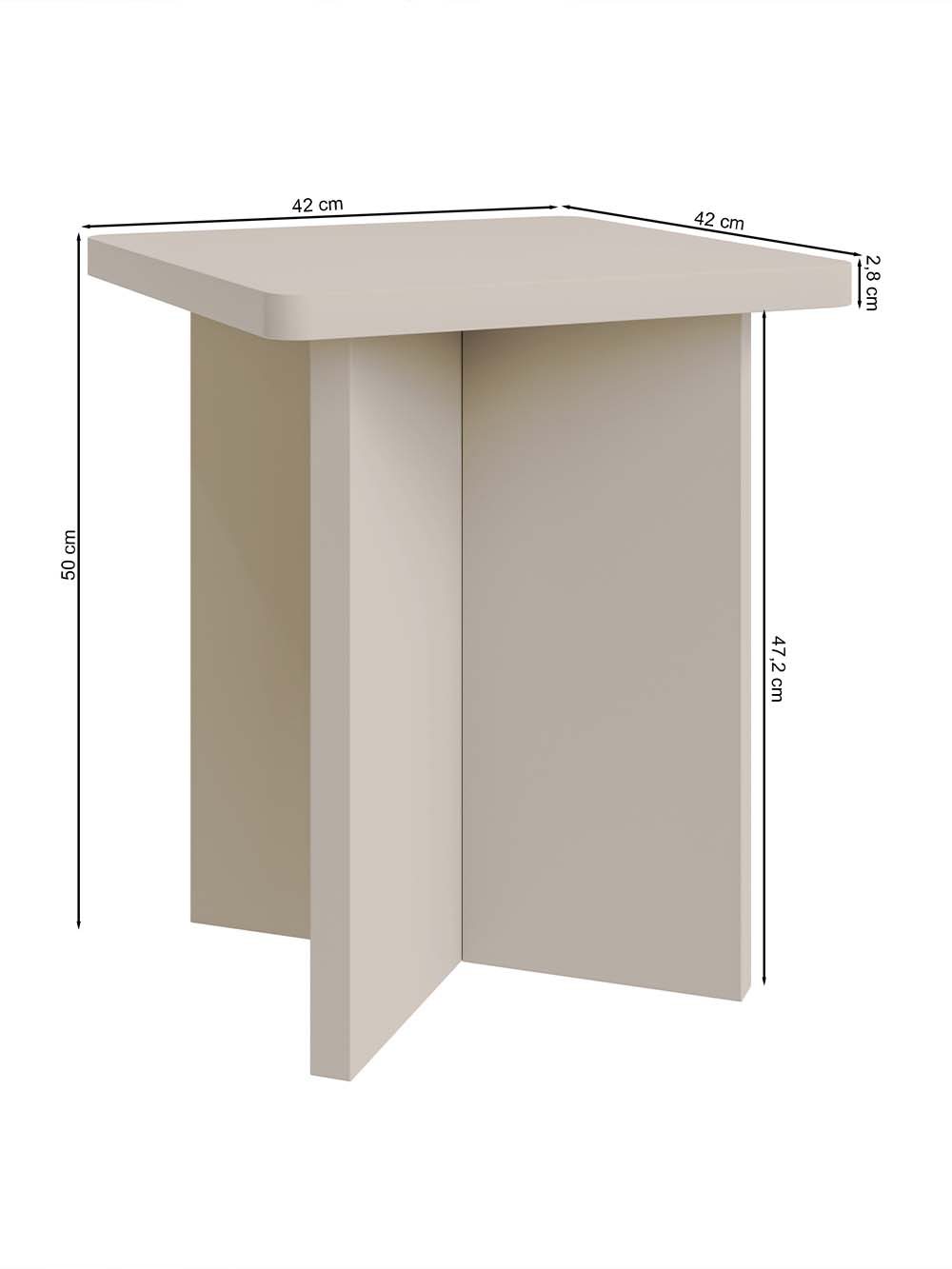 Išoriniai baldo matmenys: ilgis / plotis / aukštis, cm: 42 / 42 / 50.