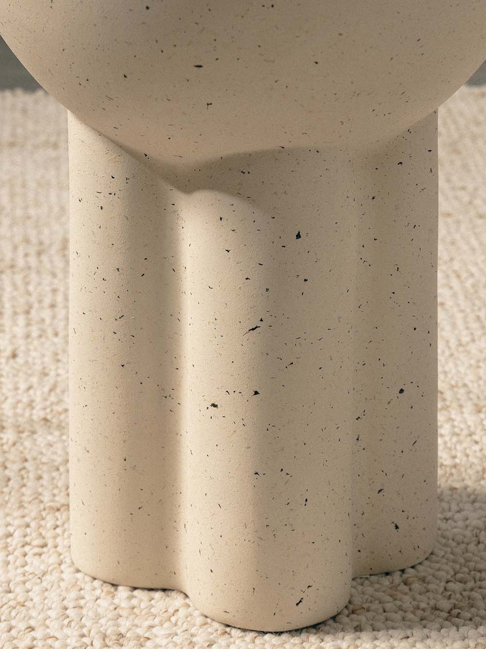 Priežiūra: Betonas – tai natūralių medžiagų mišinys, turintis porėtą struktūrą ir unikalų paviršiaus raštą. Siekiant išlaikyti staliuko paviršiaus grožį ir apsaugoti nuo dėmių, rekomenduojama kas 6 mėnesius jį padengti parafino pagrindo vašku. Kasdieniam valymui pakanka naudoti minkštą, drėgną šluostę. Verta vengti stiprių valiklių ir ilgai nepalikti skysčių ant paviršiaus, kad išvengtumėte dėmių ar spalvos pakitimų. Dėl natūralios medžiagos savybių laikui bėgant paviršiaus atspalvis gali šiek tiek pakisti – tai natūralus ir autentiškas betono bruožas.