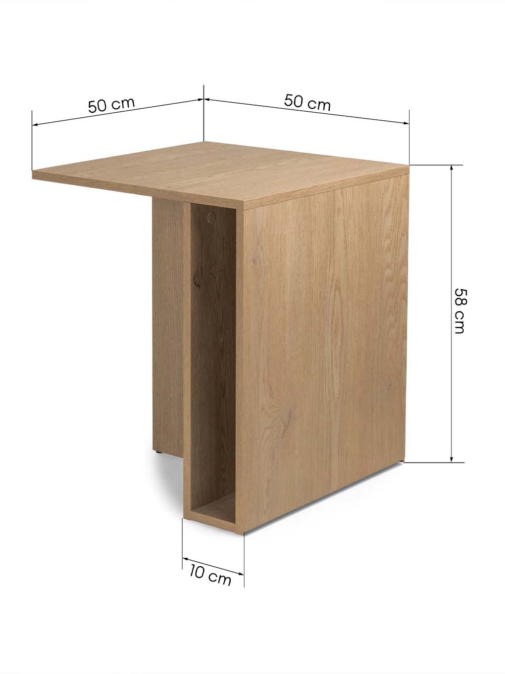 Išoriniai baldo matmenys: ilgis / plotis / aukštis, cm: 50 / 50 / 58.