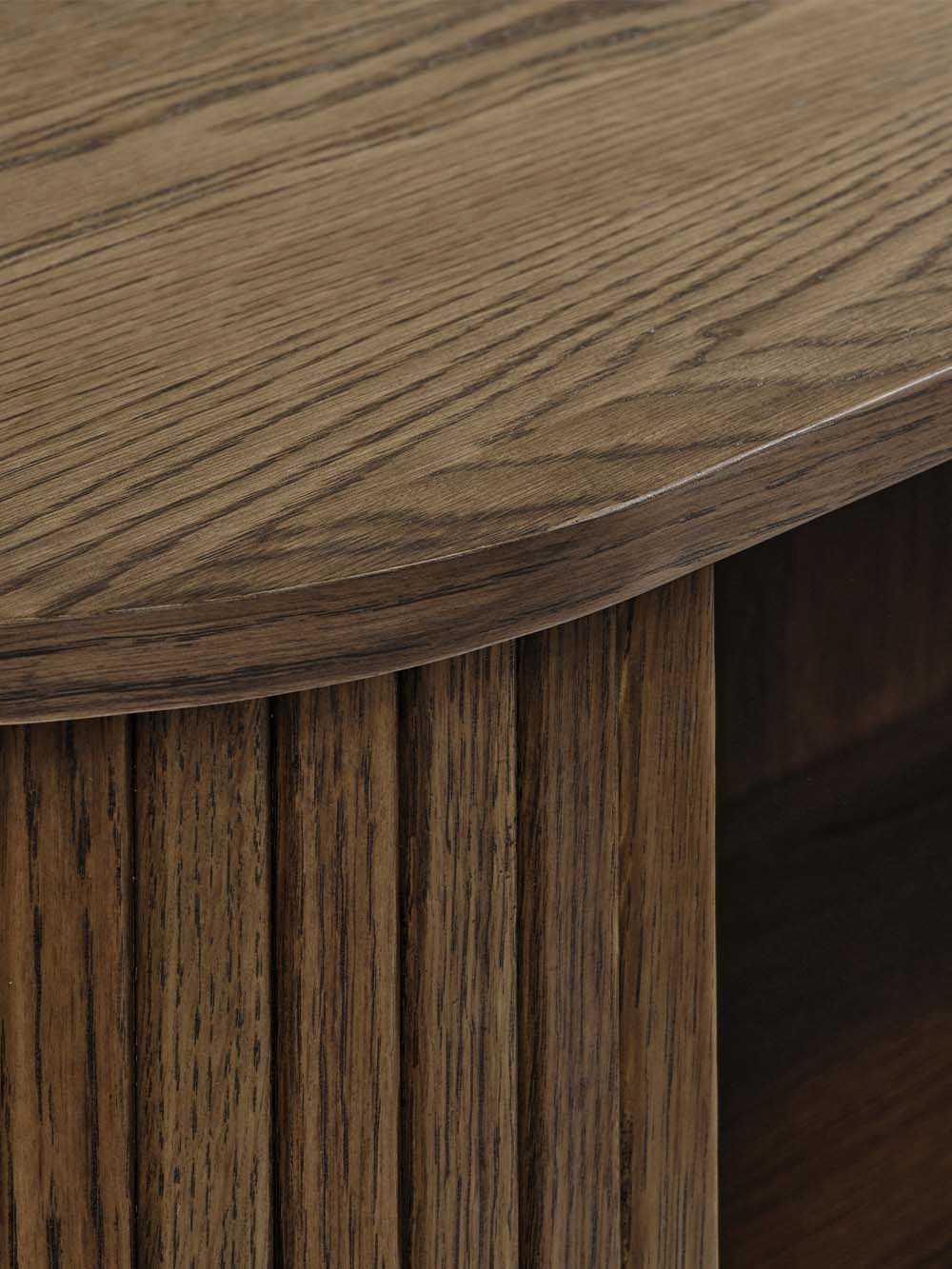 Korpuso medžiaga: natūraliu ąžuolo lukštu faneruota MDF plokštė.