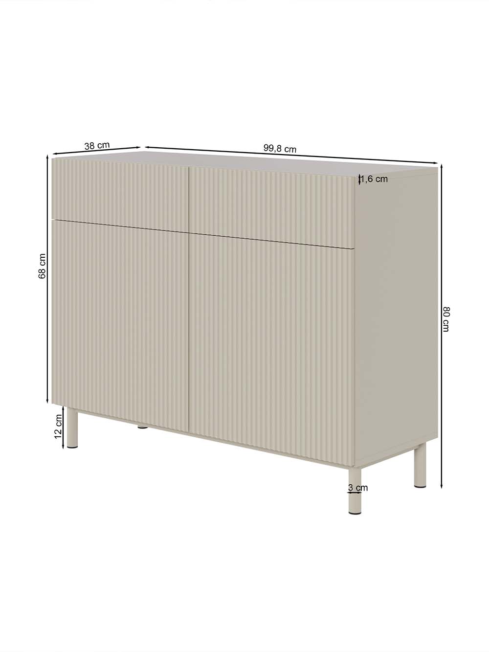 Išoriniai baldo matmenys: plotis / gylis / aukštis, cm: 100 / 38 / 80.