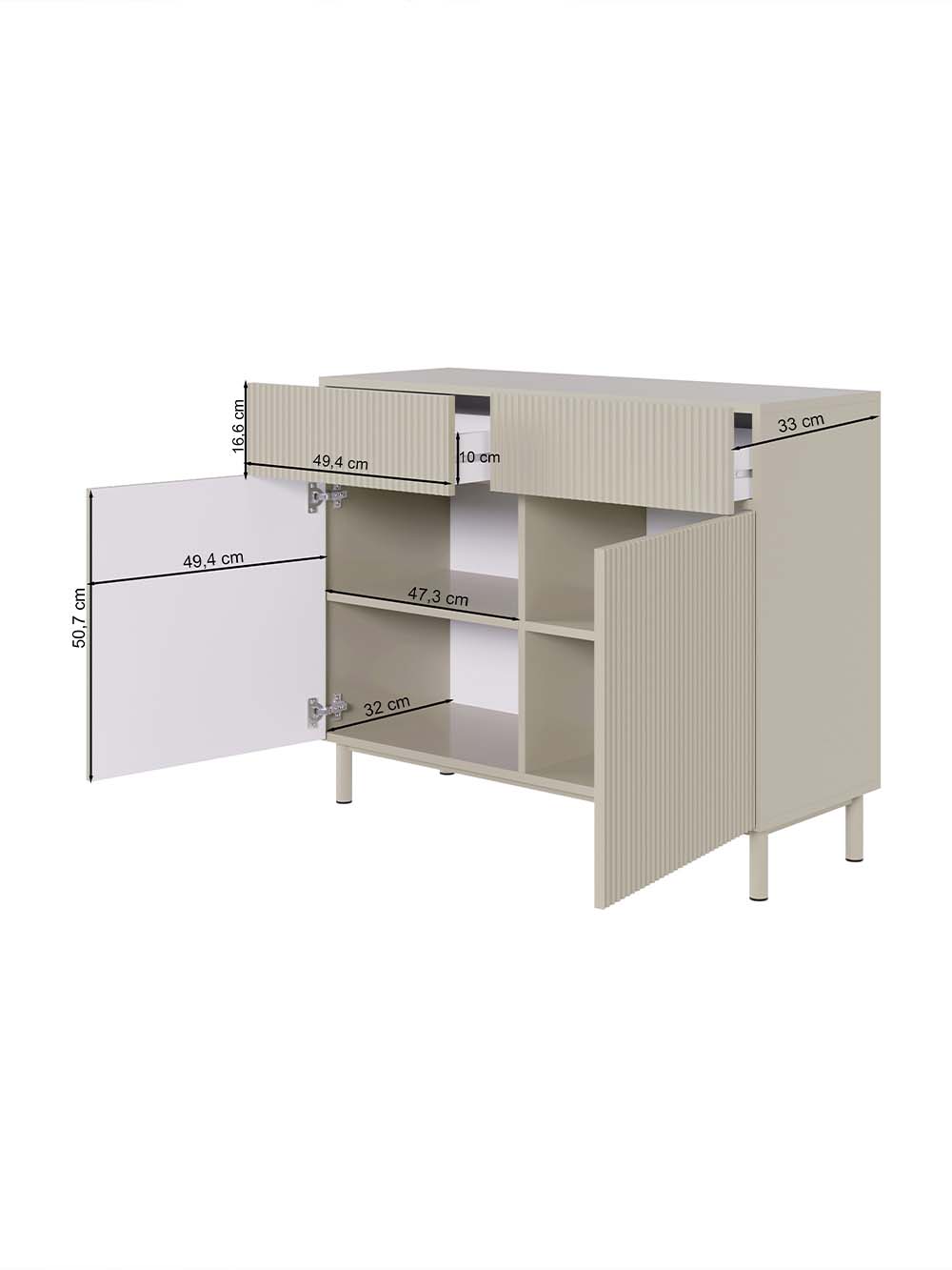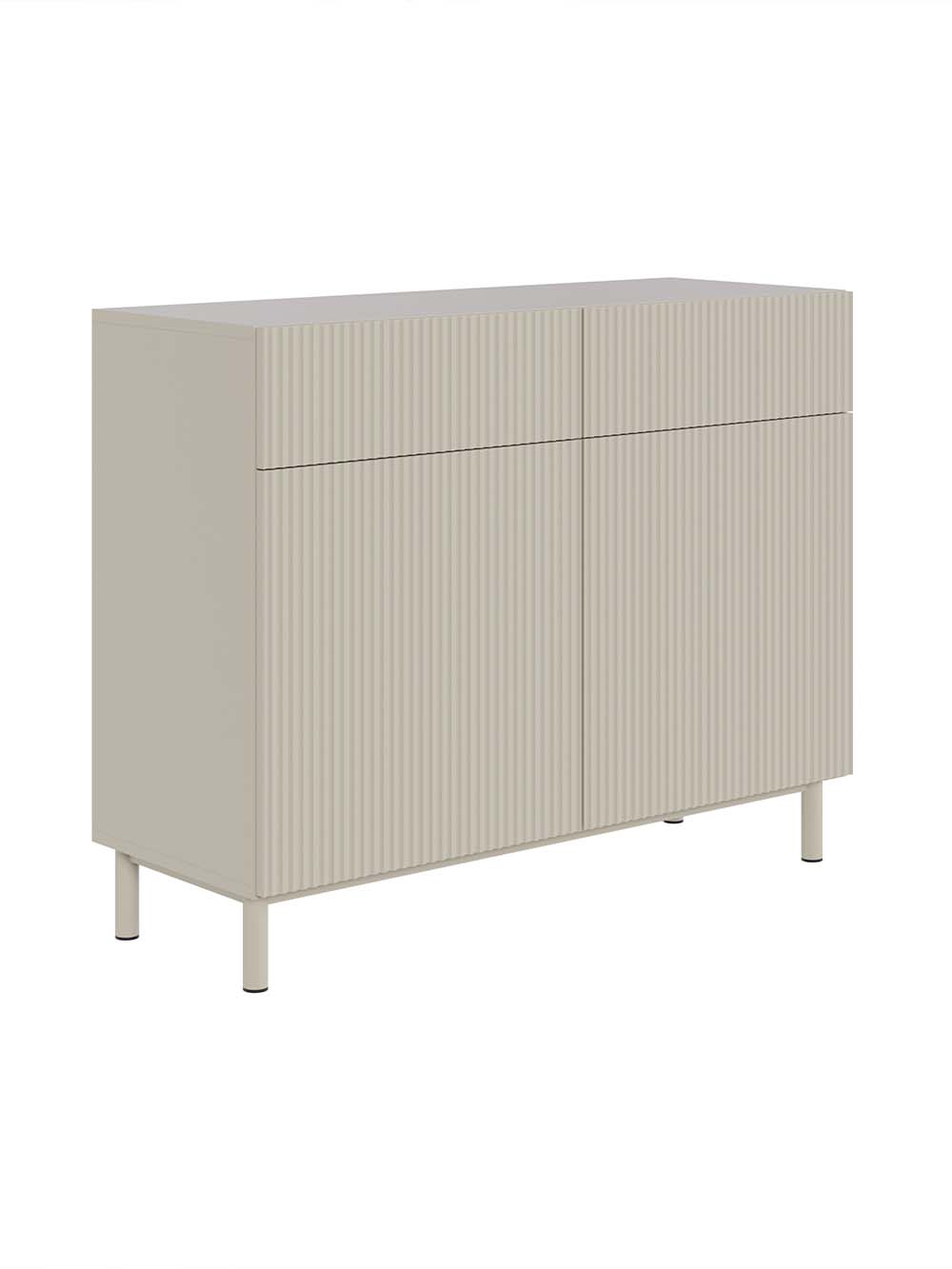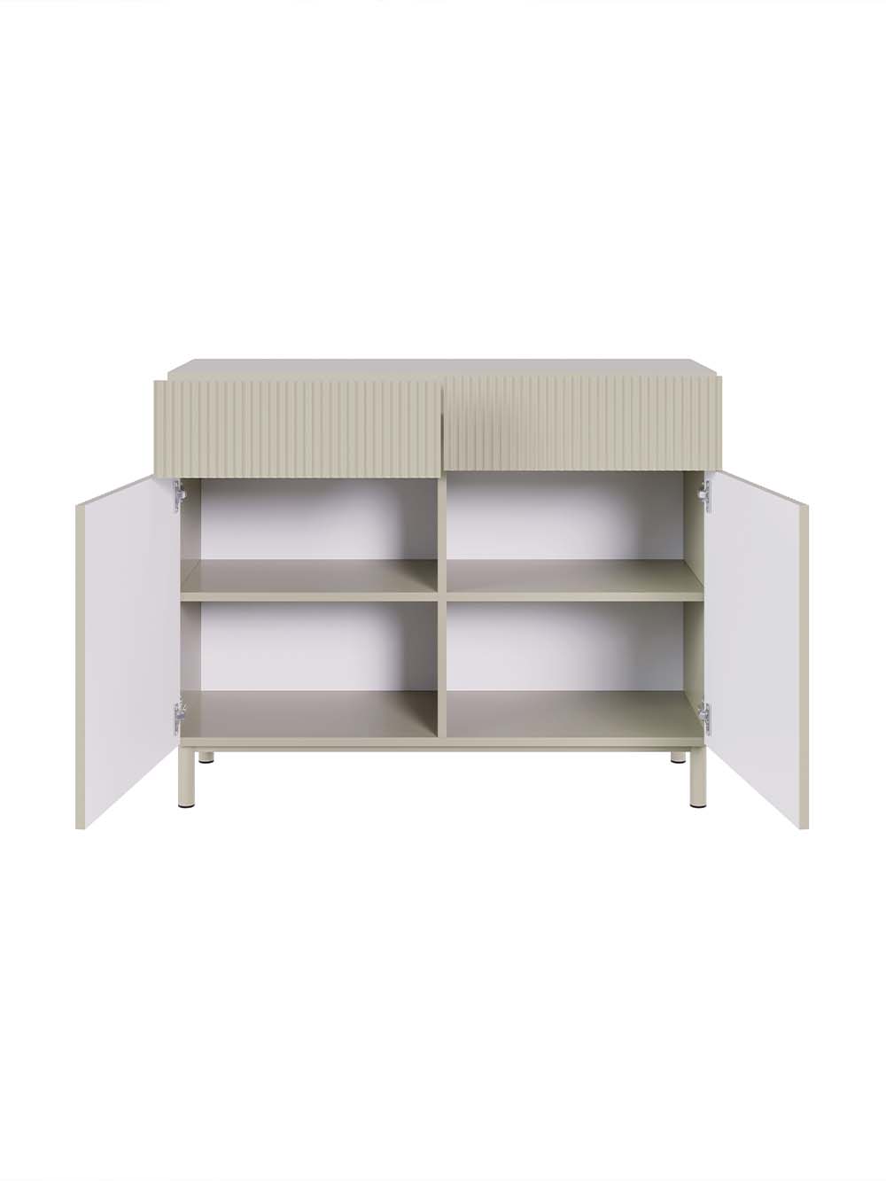 Stalčiaus priekio ir durelių medžiaga: frezuota ir laminuota korpuso spalvos MDF plokštė.