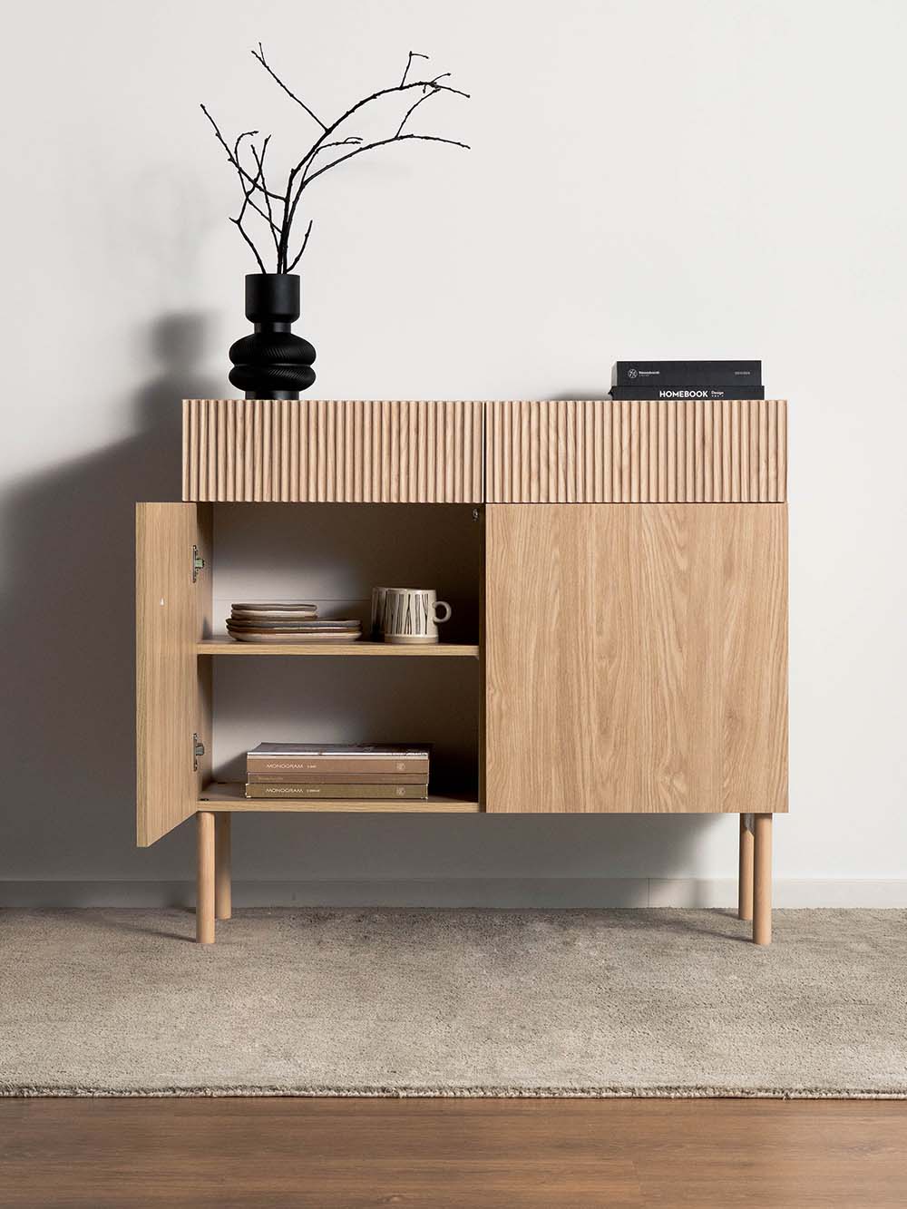 Išoriniai baldo matmenys: plotis / gylis / aukštis, cm: 100 / 38 / 90,6.