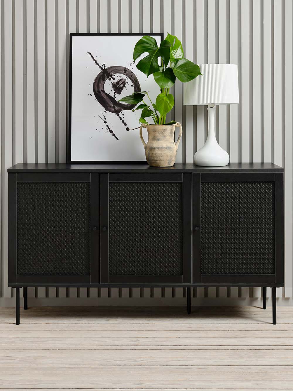 Korpuso medžiaga: laminuota MDF plokštė, dirbtinio ratano tinklelis.
