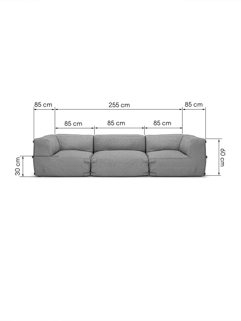 Išoriniai baldo matmenys: plotis / gylis / aukštis, cm: 255 / 85 / 60.