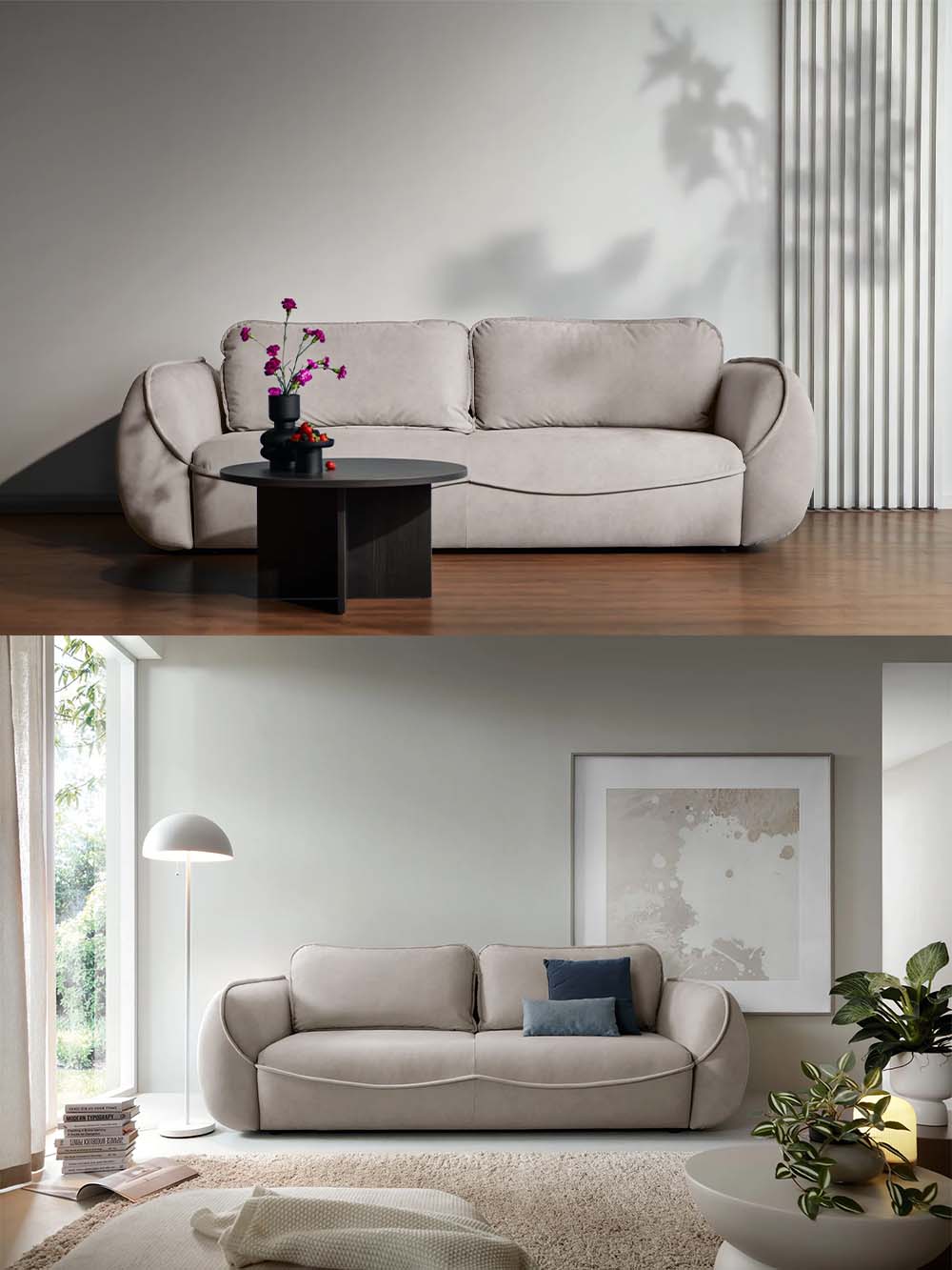 Audinio tipas: švelnus ir malonus veliūrinis audinys, pasižymintis Easy Clean technologija, kuri leidžia lengvai pašalinti nešvarumus drėgna šluoste. Audinys atsparus dėvėjimuisi.