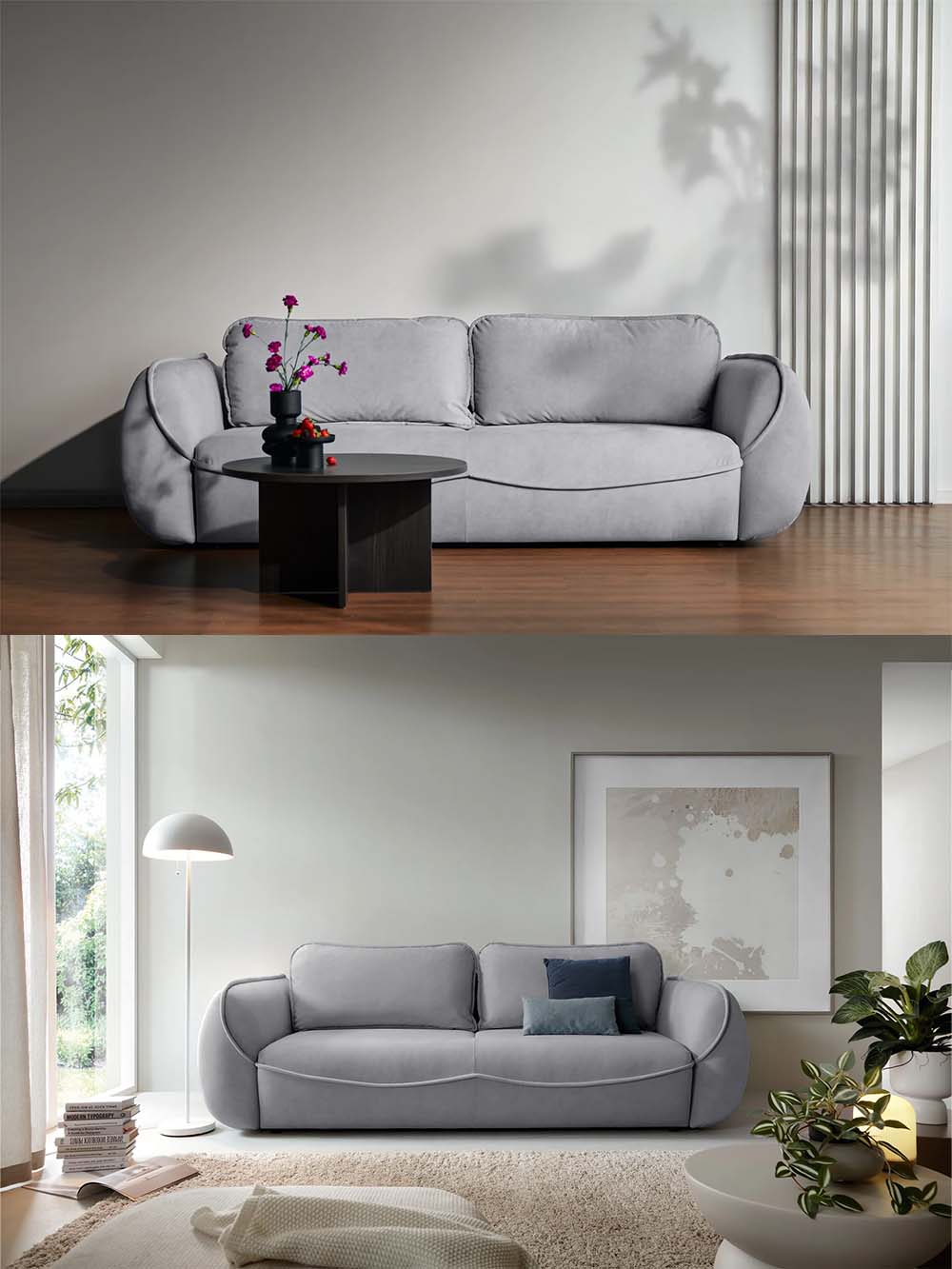 Audinio tipas: švelnus ir malonus veliūrinis audinys, pasižymintis Easy Clean technologija, kuri leidžia lengvai pašalinti nešvarumus drėgna šluoste. Audinys atsparus dėvėjimuisi.