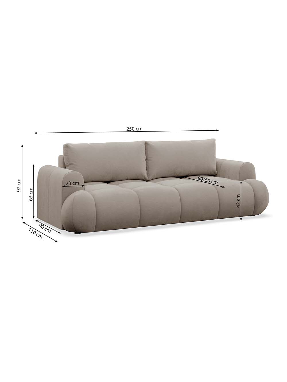 Išoriniai baldo matmenys: plotis / gylis / aukštis: 250 / 110 / 92 cm.