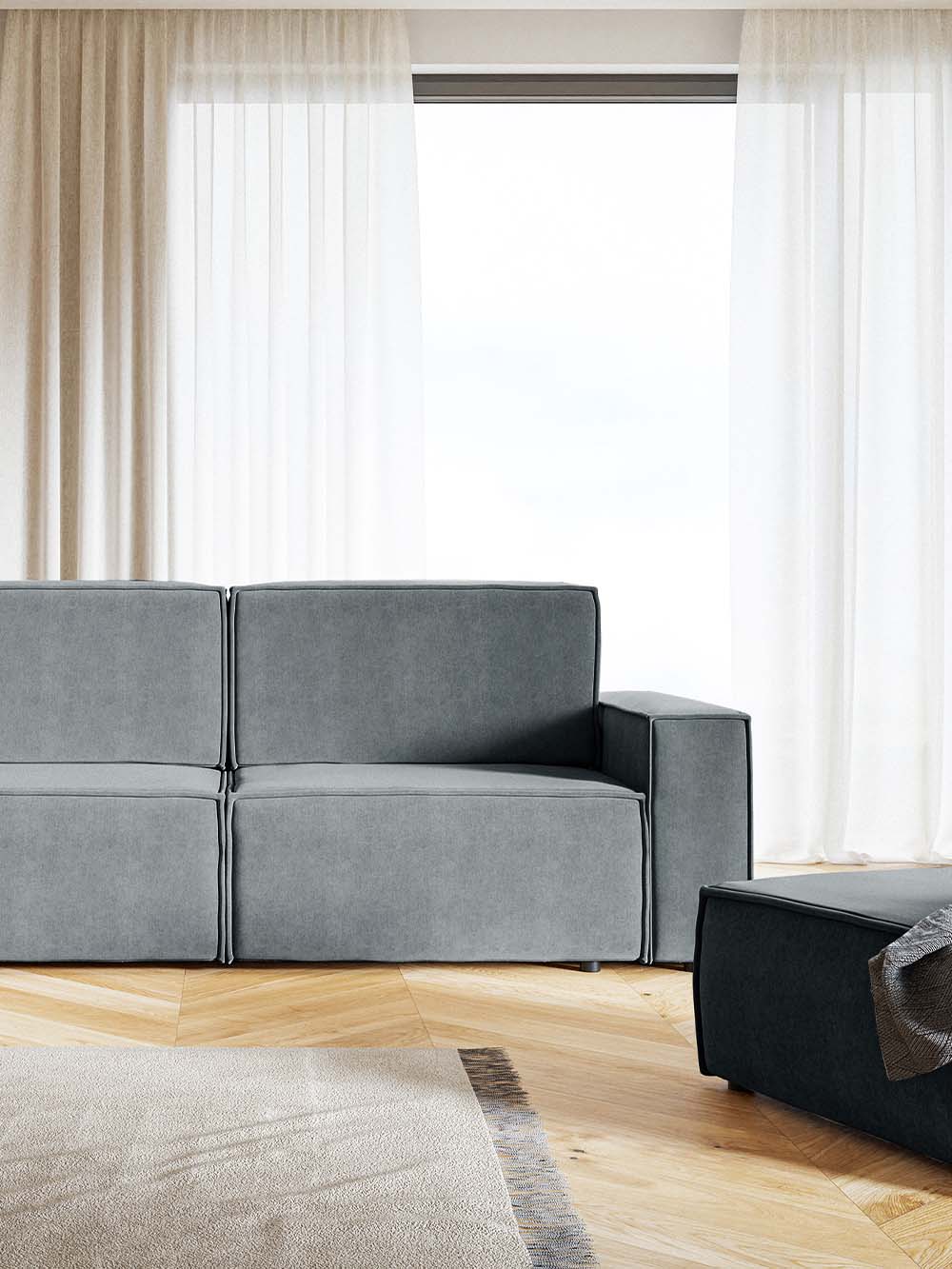 Apie audinį: Amon – švelnus veliūro tipo audinys su lengvu, subtiliu blizgesiu. Jo paviršius minkštas ir malonus liesti, lengvai atspindi šviesą. Audinys yra tvirtas ir atsparus intensyviam naudojimui, todėl puikiai tinka kasdieniams baldams. Dėl hidrofobinės „Water Stop“ technologijos, skysčiai lėčiau įsigeria, todėl audinį lengva prižiūrėti ir išlaikyti tvarkingą išvaizdą.
