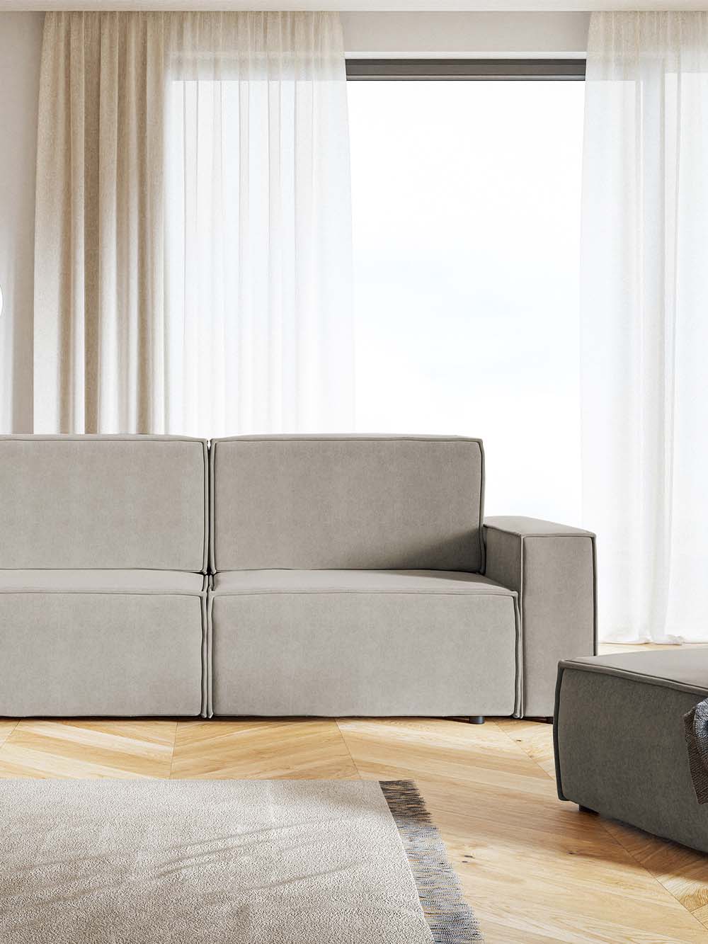 Apie audinį: Amon – švelnus veliūro tipo audinys su lengvu, subtiliu blizgesiu. Jo paviršius minkštas ir malonus liesti, lengvai atspindi šviesą. Audinys yra tvirtas ir atsparus intensyviam naudojimui, todėl puikiai tinka kasdieniams baldams. Dėl hidrofobinės „Water Stop“ technologijos, skysčiai lėčiau įsigeria, todėl audinį lengva prižiūrėti ir išlaikyti tvarkingą išvaizdą.