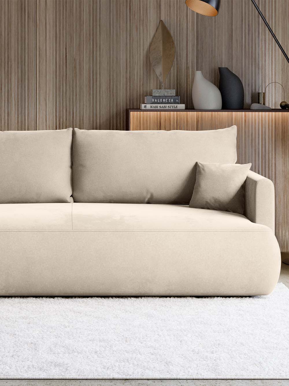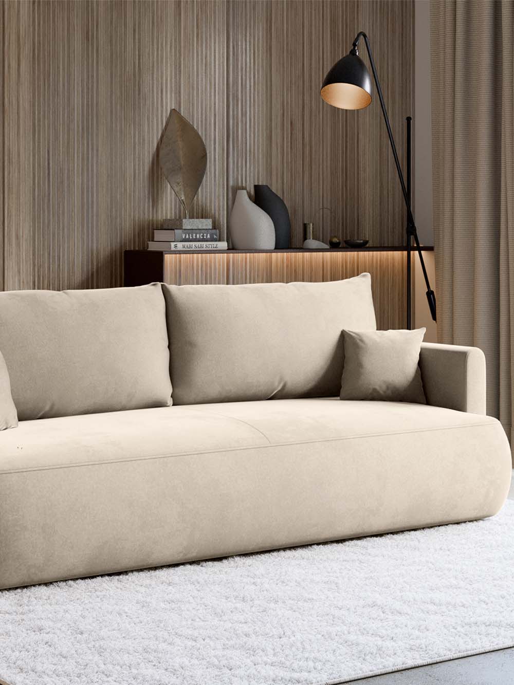 Apie audinį: Castel – tai minkštas veliūrinis audinys. Jo paviršius švelnus ir malonus liesti, subtiliai blizgus. Audinys pasižymi dideliu atsparumu trinčiai, dilimui bei pumpuravimuisi, todėl puikiai tinka kasdieniam naudojimui. Dėl „Easy Clean“ technologijos dėmes lengva pašalinti naudojant šiek tiek vandens ir minkštą šluostę, tad audinį paprasta prižiūrėti ir ilgai išlaikyti tvarkingą išvaizdą.