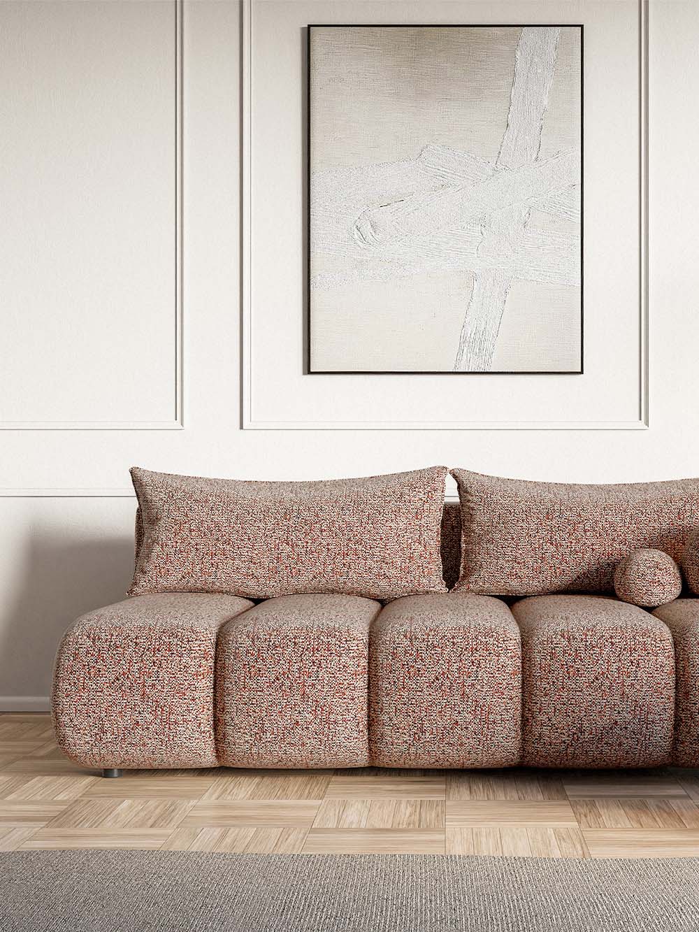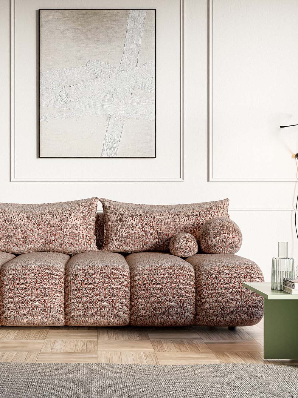 Apie audinį: Puente-tai aukštos kokybės baldinis audinys su išraiškinga, šiek tiek grublėta tekstūra ir subtiliu spalvų žaismu, suteikiančiu paviršiui gyvumo. Tvirtas ir tankus audinys puikiai tinka kasdieniam naudojimui. Jis atsparus trinčiai, šviesos poveikiui ir mažai linkęs burbuliuotis, todėl ilgai išlaiko tvarkingą bei estetišką išvaizdą.