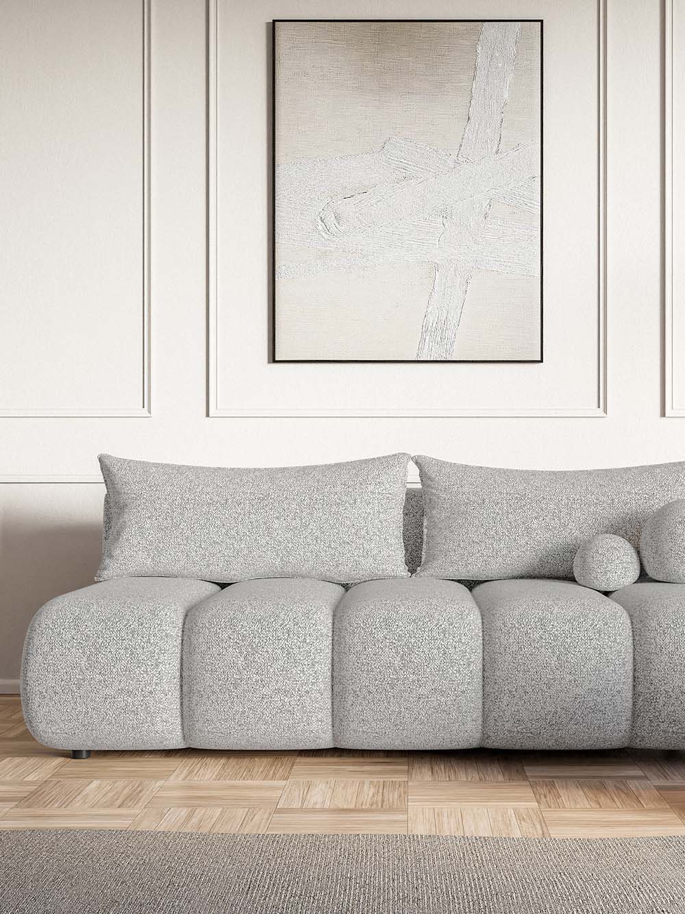 Trivietė sofa Prive, šviesiai pilka, pintas audinys