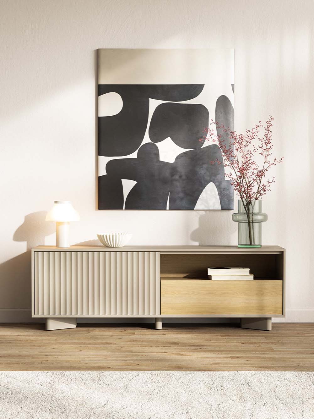 Baldų kolekcija Diso / Diso-R pasižymi šiuolaikišku dizainu ir subtilia estetika. Kašmyro ir natūralaus ąžuolo derinys kuria šiltą, vizualiai lengvą įvaizdį. Kolekcijoje siūloma galimybė rinktis iš dviejų dizainų – Diso su lygiais fasadais ir Diso-R su dekoratyviais grioveliais, leidžiančiais pritaikyti baldus skirtingiems interjero sprendimams. Subalansuotos formos ir tvirta kojelių konstrukcija užtikrina funkcionalumą bei patogų kasdienį naudojimą.