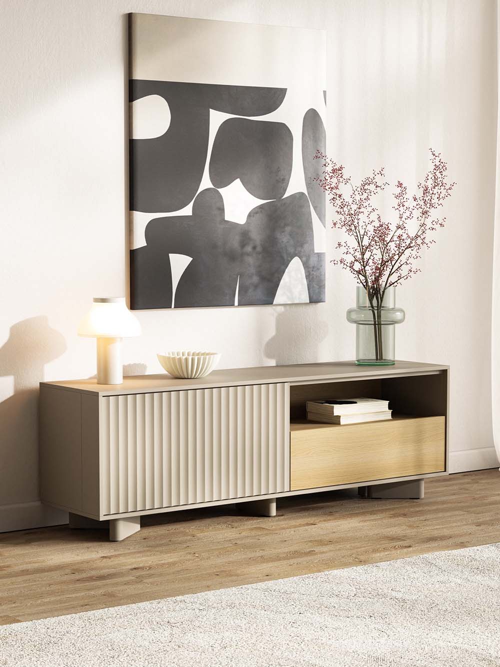 TV komoda Diso-R 140 cm, kašmyro/ąžuolo