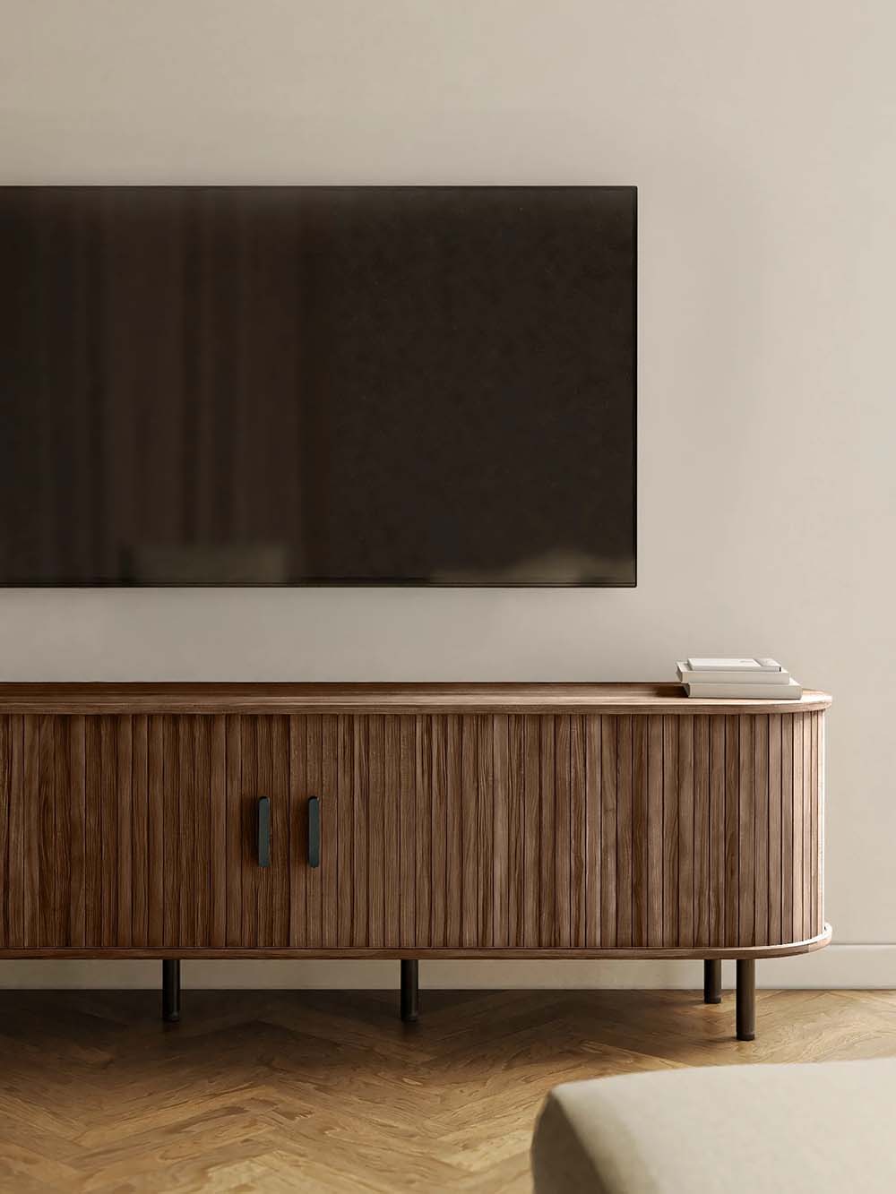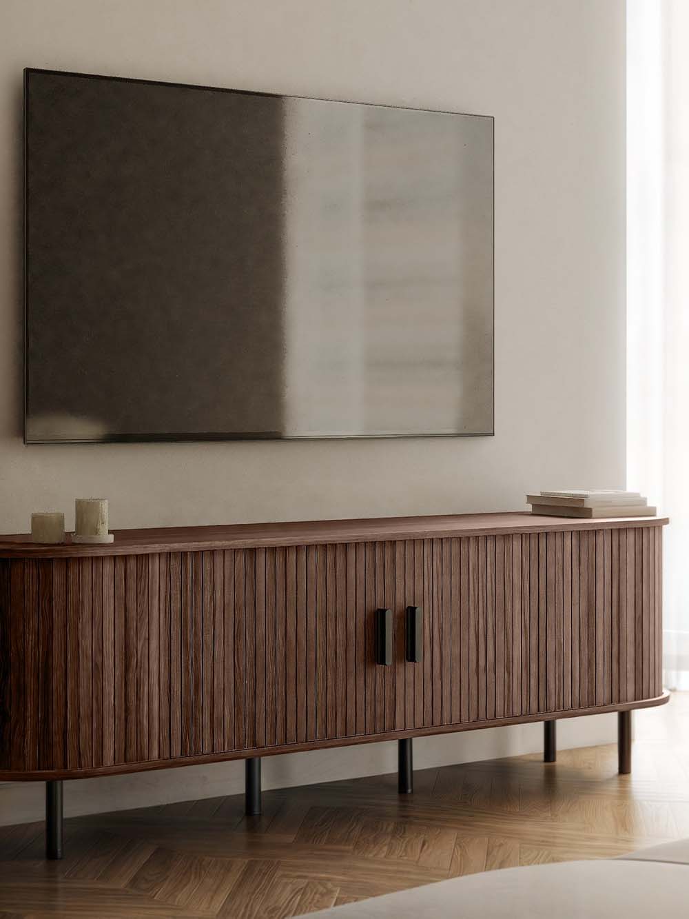 Išoriniai baldo matmenys: plotis / gylis / aukštis, cm: 180 / 45 / 55.