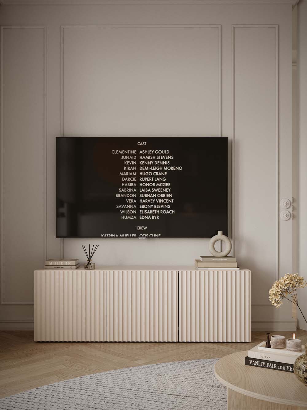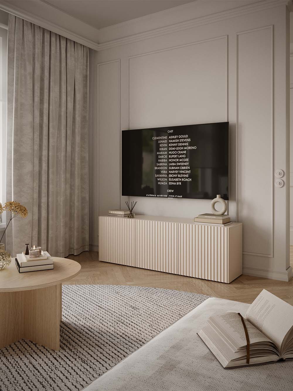 Korpuso plokštės gamintojas ir kodas: Woodeco, PU1506 Cashmere Beige.