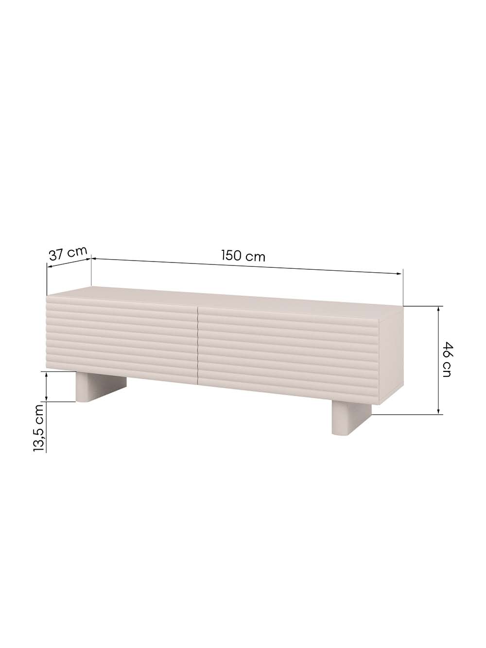 Išoriniai baldo matmenys: plotis / gylis / aukštis, cm: 150 / 37 / 46.