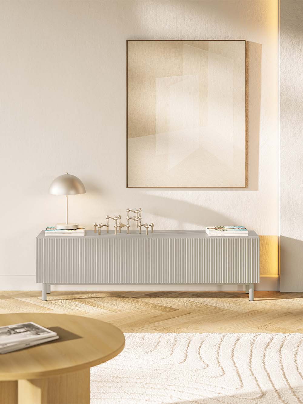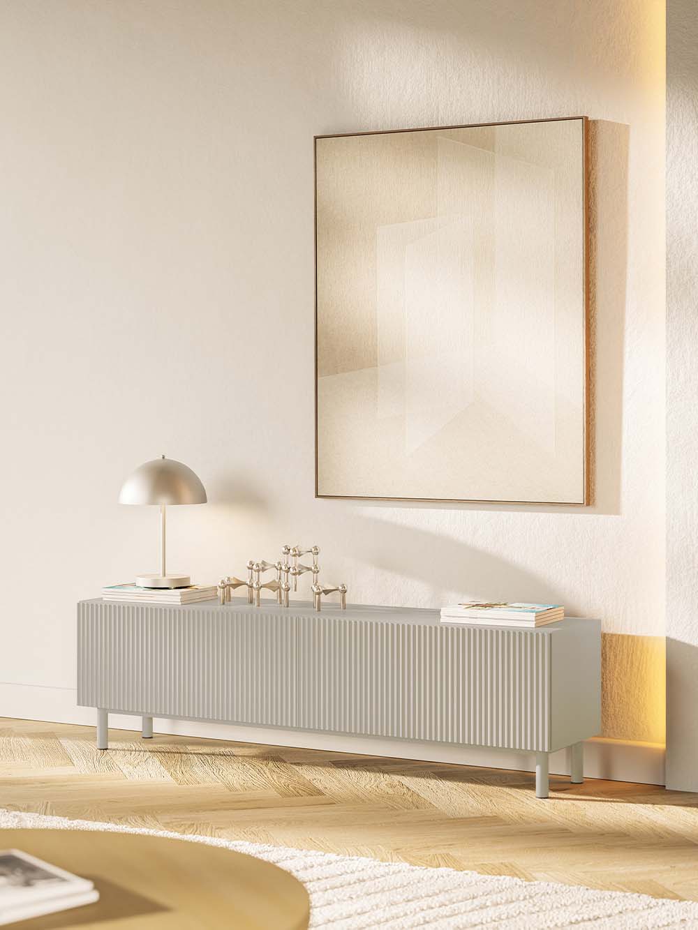 Durelių medžiaga: frezuota ir laminuota korpuso spalvos MDF plokštė.