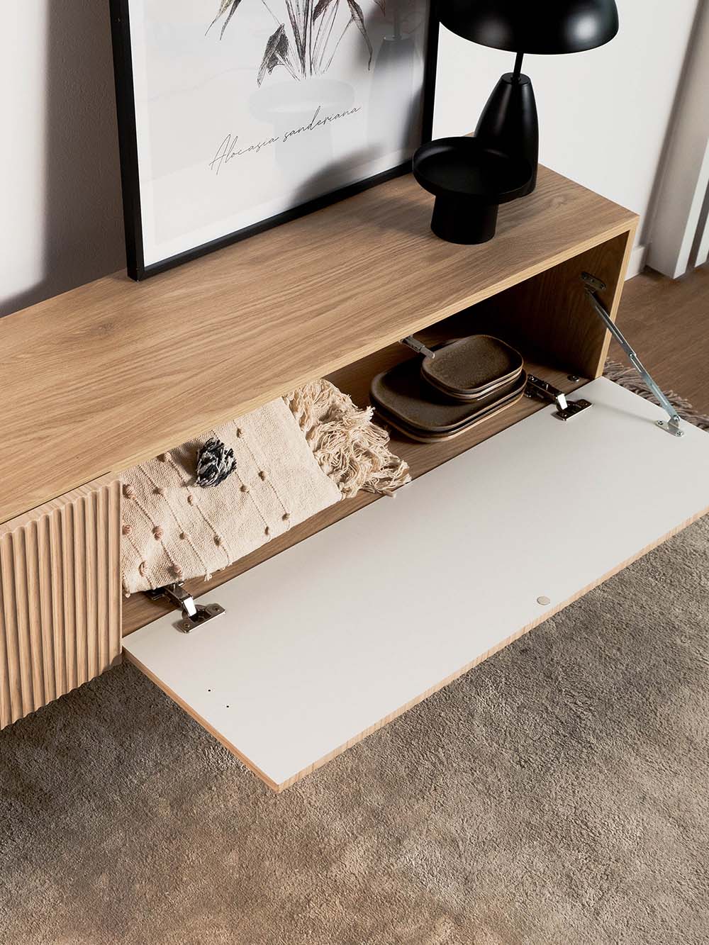 Durelių medžiaga: frezuota ir laminuota korpuso spalvos plėvele MDF plokštė.