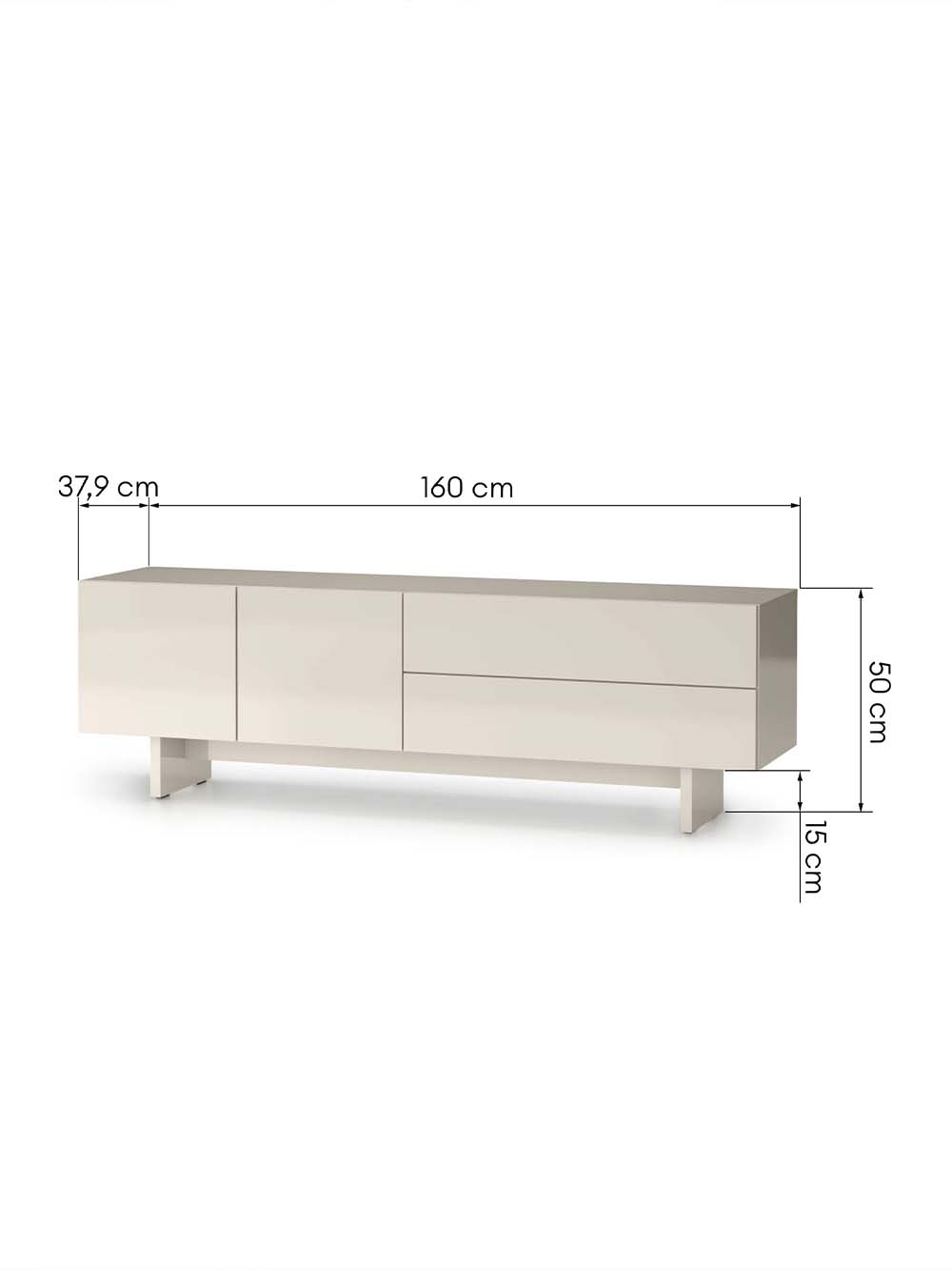 Išoriniai baldo matmenys: plotis / gylis / aukštis, cm: 160 / 37,9 / 50.