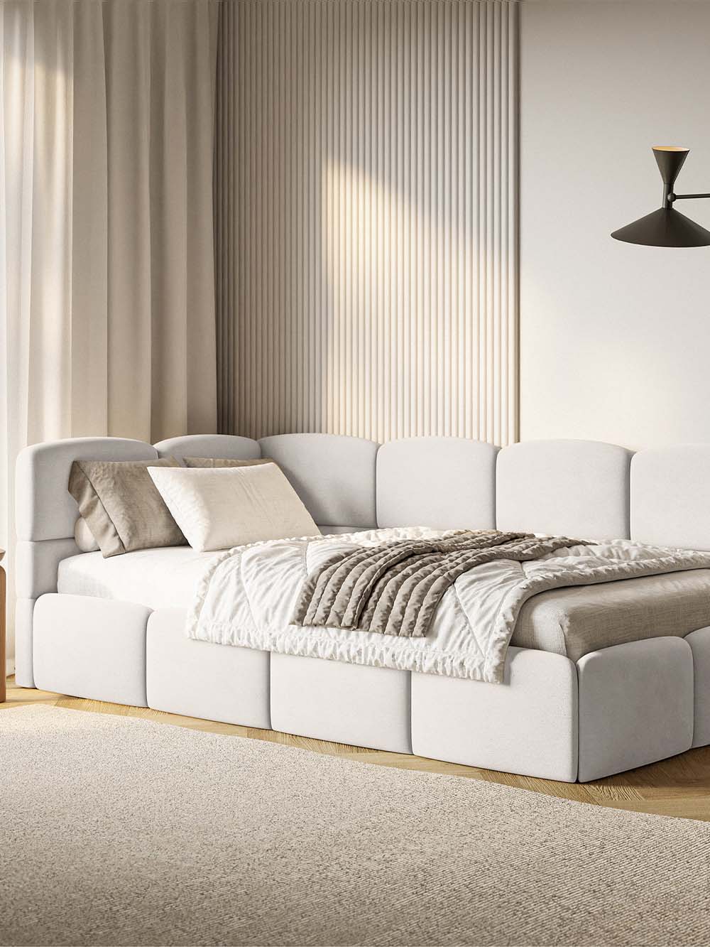 Pristatome šiuolaikiško dizaino viengulę lovą Capri su minkštomis, iškilių pagalvėlių formos sienelėmis, kurios suteikia komfortą tiek poilsiui, tiek skaitymui. Lova komplektuojama su metaliniu grotelių rėmu ir talpia patalynės dėže, o dujinio pakėlimo mechanizmas leidžia patogiai ir saugiai laikyti daiktus. Galite pasirinkti lovos kampo pusę, audinį bei papildomai komplektuoti su čiužiniu ar apsauginėmis atramomis.