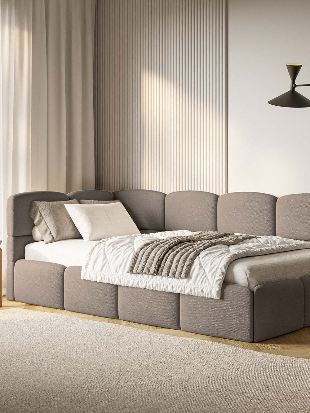Apie audinį: Melody – minkštas šenilinis audinys su malonia liesti tekstūra. Jis pasižymi aukštu atsparumu dilimui, trinčiai ir šviesos poveikiui, todėl puikiai tinka intensyviai naudojamiems baldams. Specialus apsauginis sluoksnis sukuria hidrofobinį efektą – skysčiai neįsigeria iš karto, juos lengva nuvalyti. Tai praktiškas, patvarus ir lengvai prižiūrimas audinys.