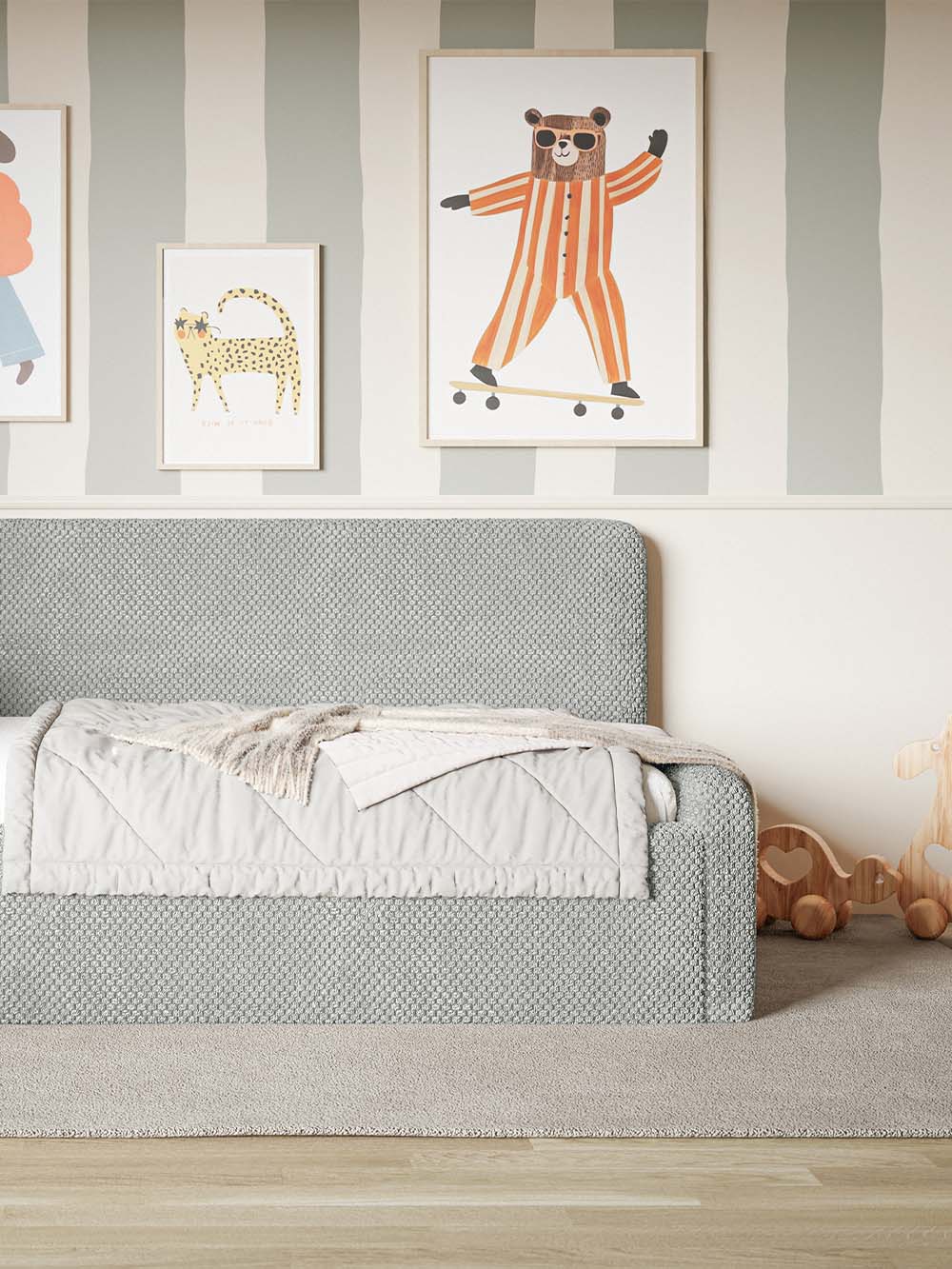 Vaikiška lova Neo, pilka, pliušas