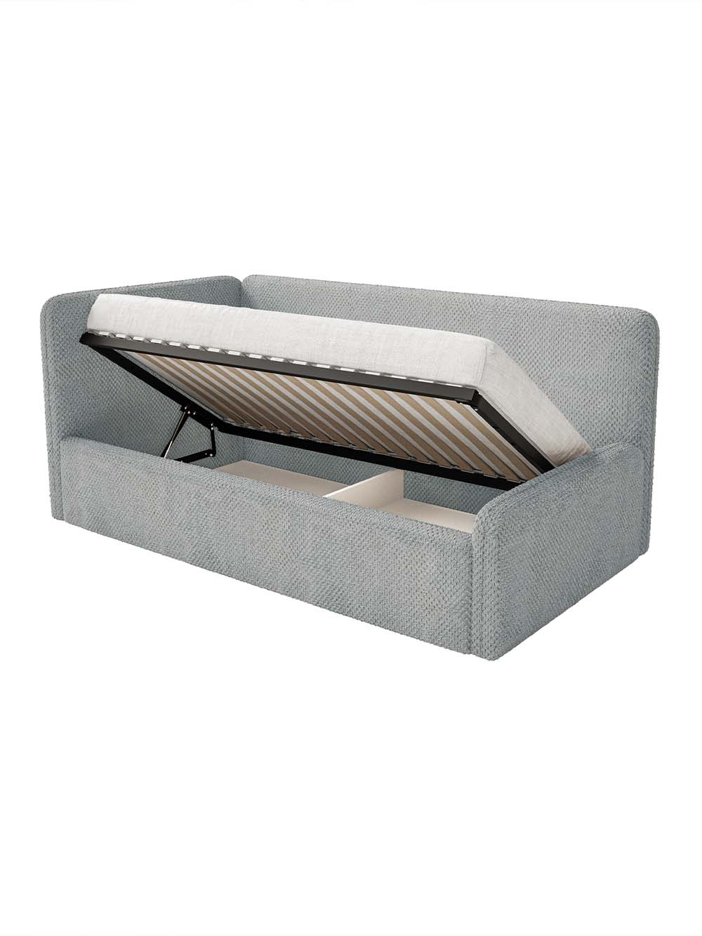 Patalynės dėžė: Yra. Atidaroma iš šono. Pakėlimo mechanizmo tipas - dujinis.