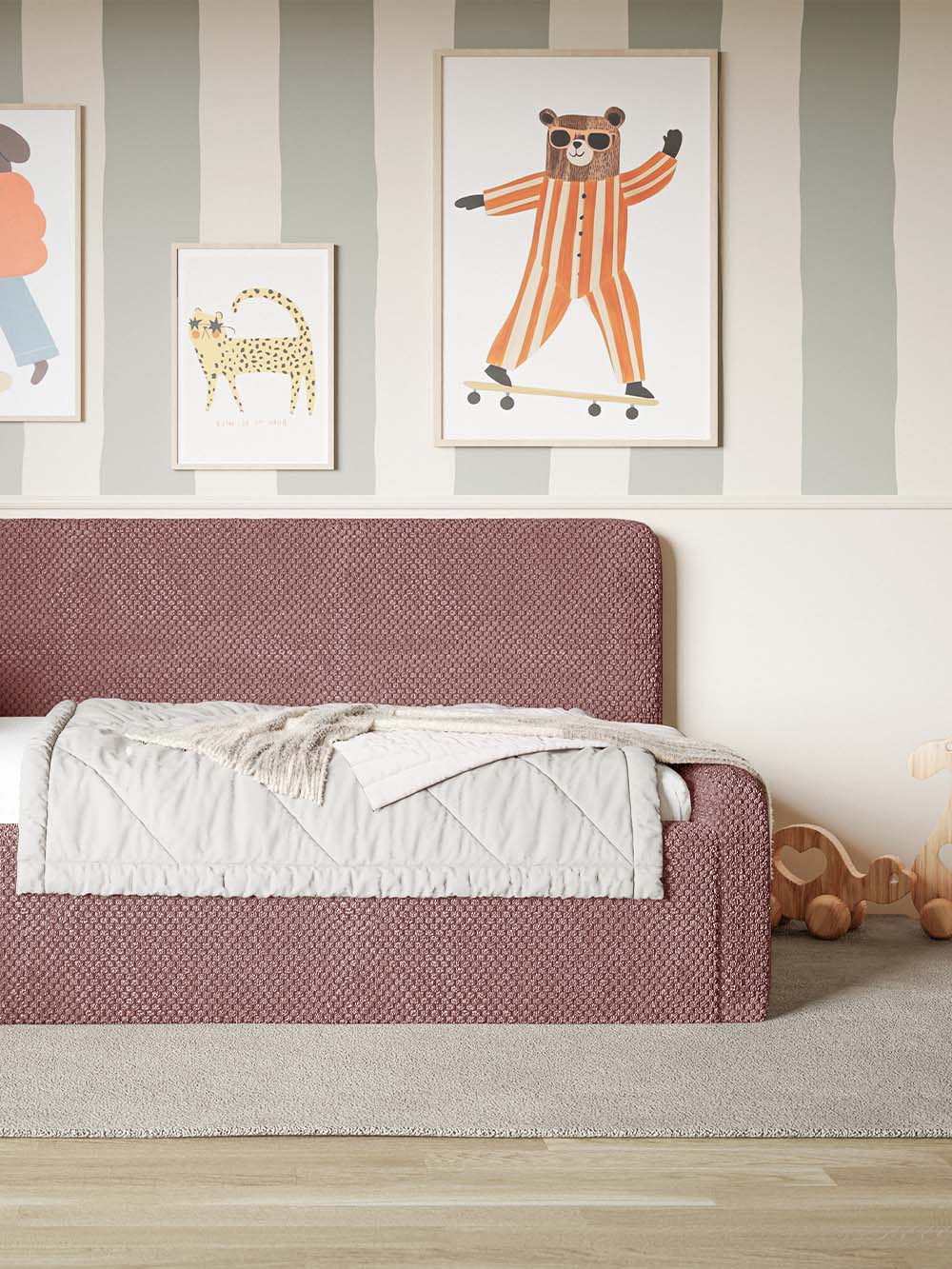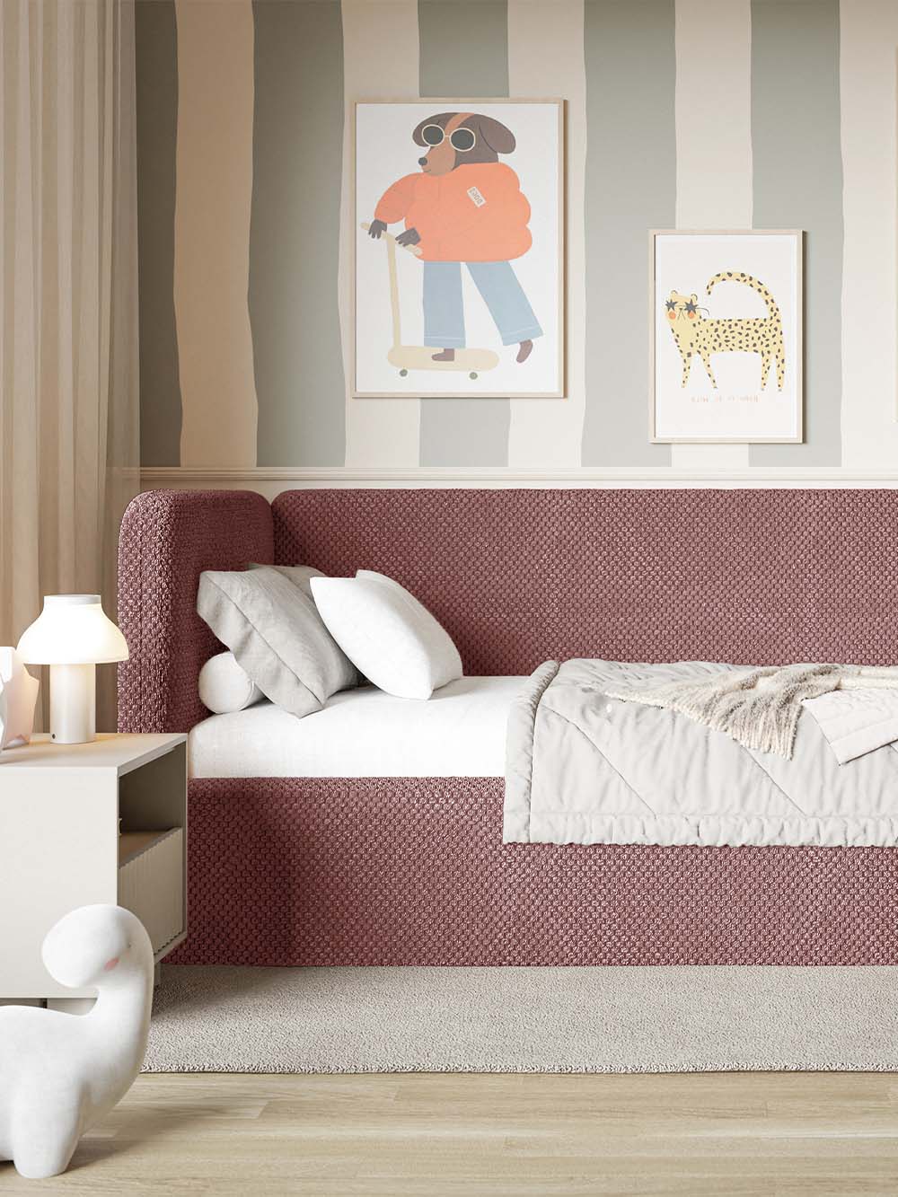 Komplektacija: čiužinys įeina į komplektaciją tik pasirinkus lovos variantą su įskaičiuotu čiužiniu. Papildomos atramos įeina į komplektaciją tik pasirinkus lovos variantą su įskaičiuotomis atramomis.