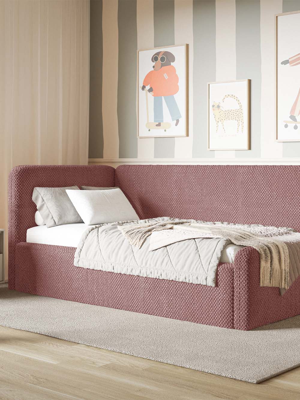 Apie audinį: Onega – tai minkštas ir itin malonus liesti pliušinis audinys, pasižymintis išraiškinga, trimatį efektą kuriančia struktūra. Dėl hidrofobinių savybių išsilieję skysčiai neįsigeria į audinį, o lieka paviršiuje lašelių pavidalu, todėl juos galima lengvai pašalinti. Audinys pasižymi aukšta kokybe, dideliu atsparumu trinčiai ir mažu polinkiu burbuliuotis, tad puikiai tinka kasdien intensyviai naudojamiems baldams.