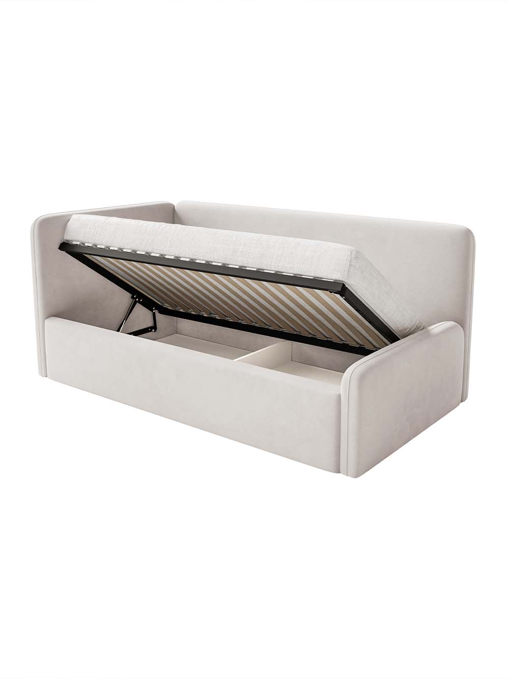 Patalynės dėžė: Yra. Atidaroma iš šono. Pakėlimo mechanizmo tipas - dujinis.
