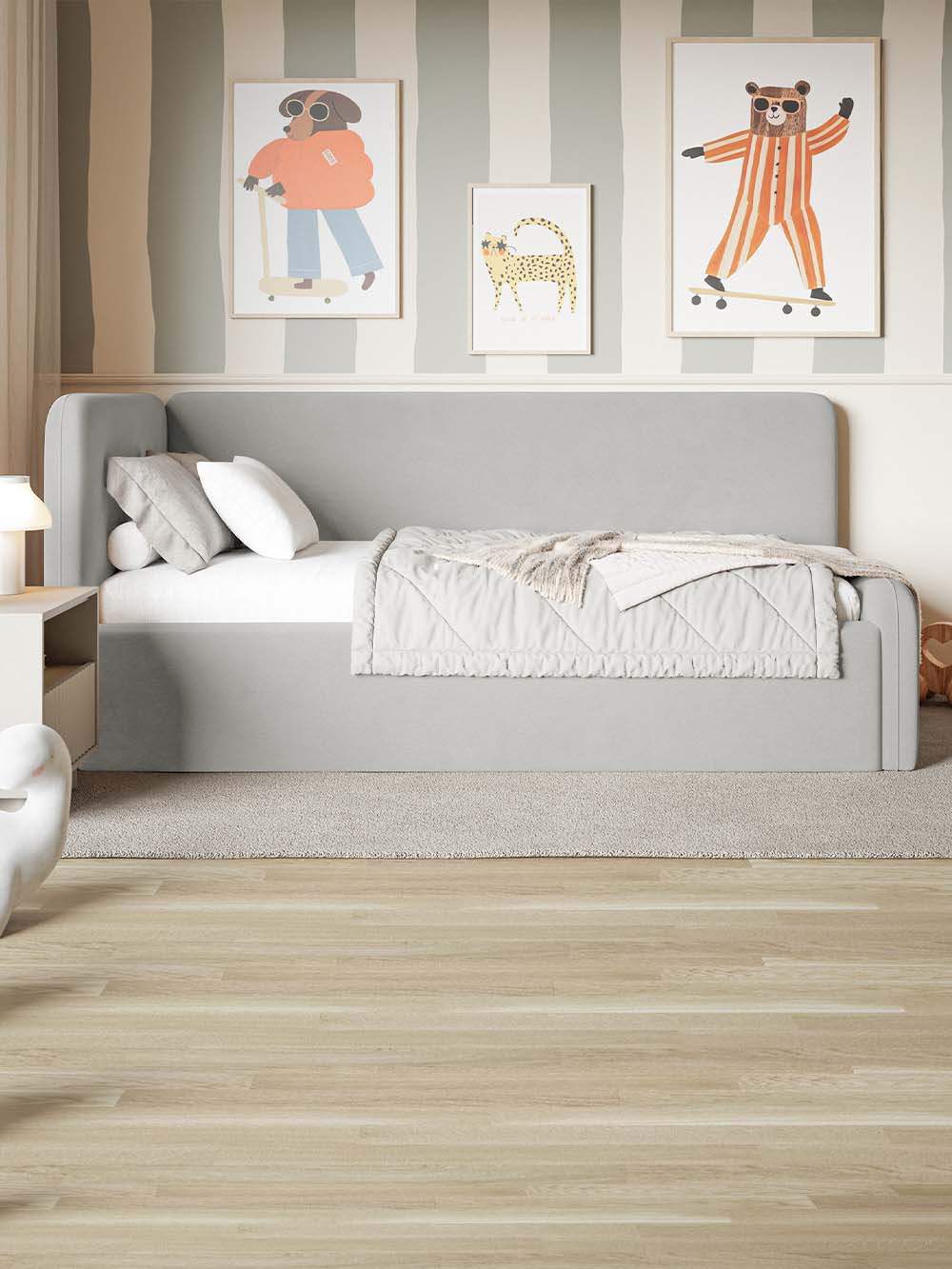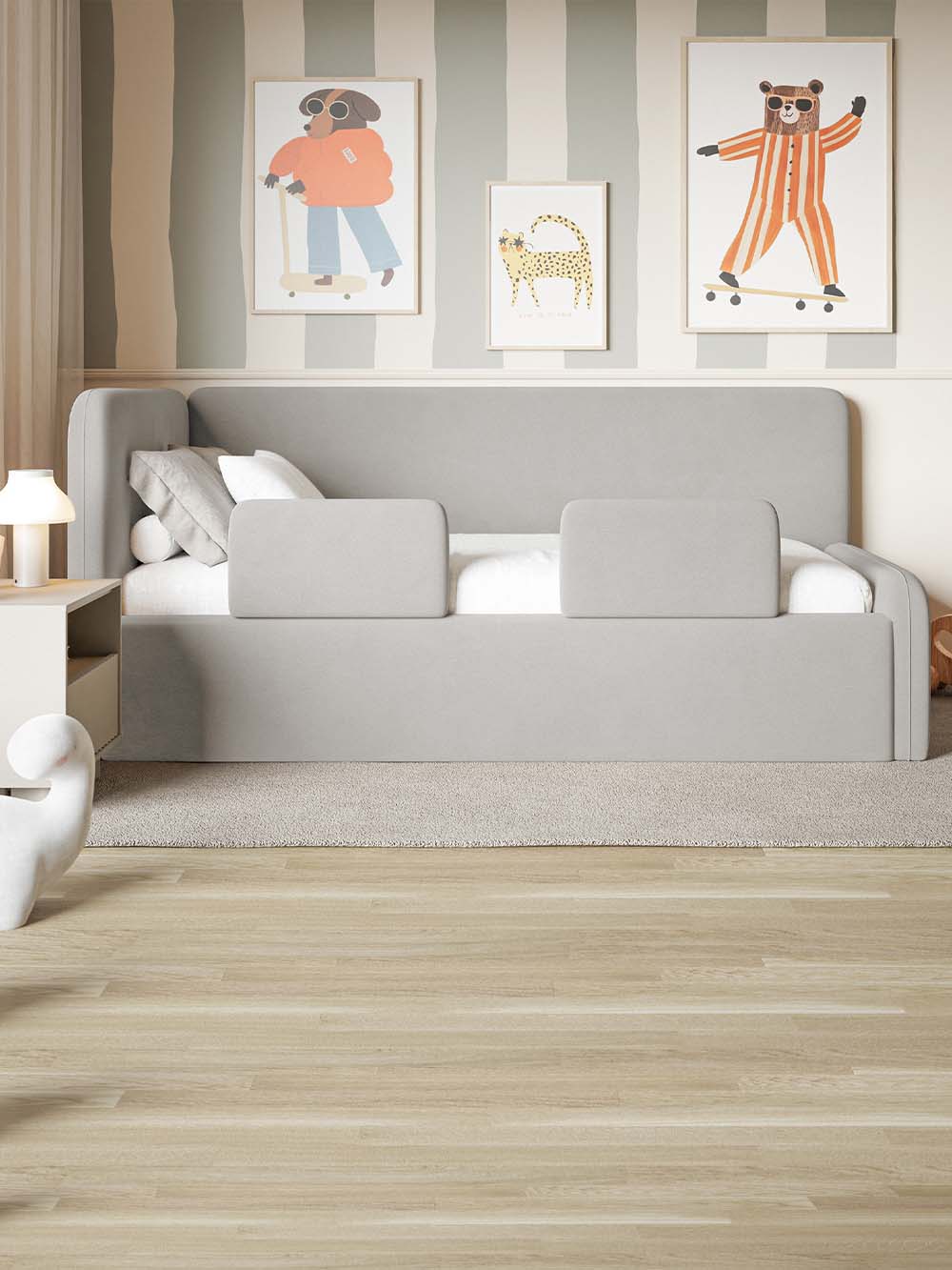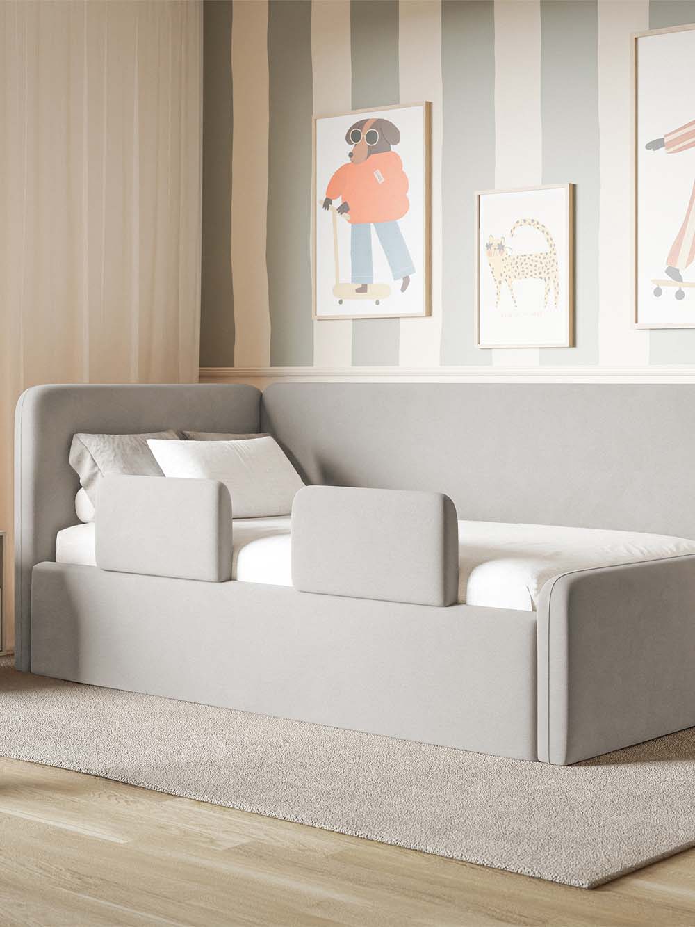 Komplektacija: čiužinys įeina į komplektaciją tik pasirinkus lovos variantą su įskaičiuotu čiužiniu. Papildomos atramos įeina į komplektaciją tik pasirinkus lovos variantą su įskaičiuotomis atramomis.