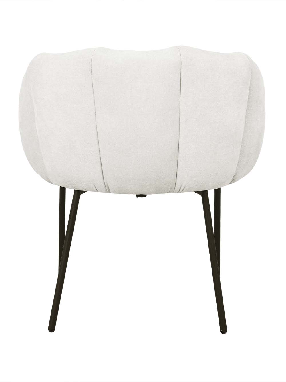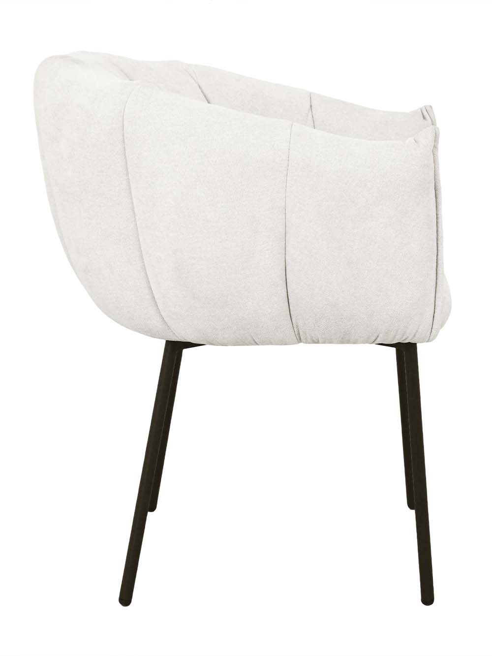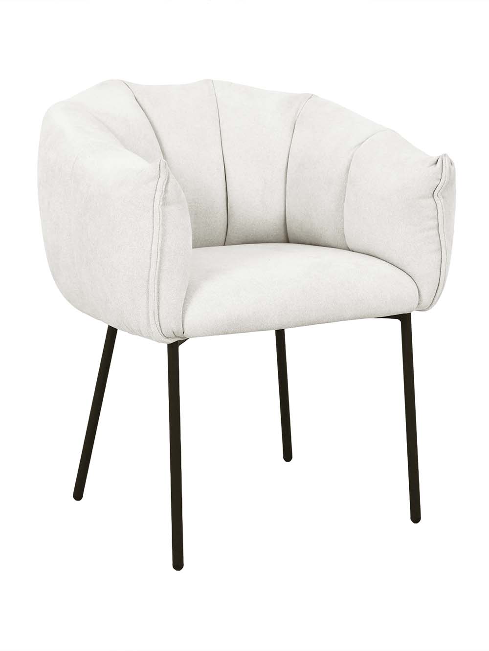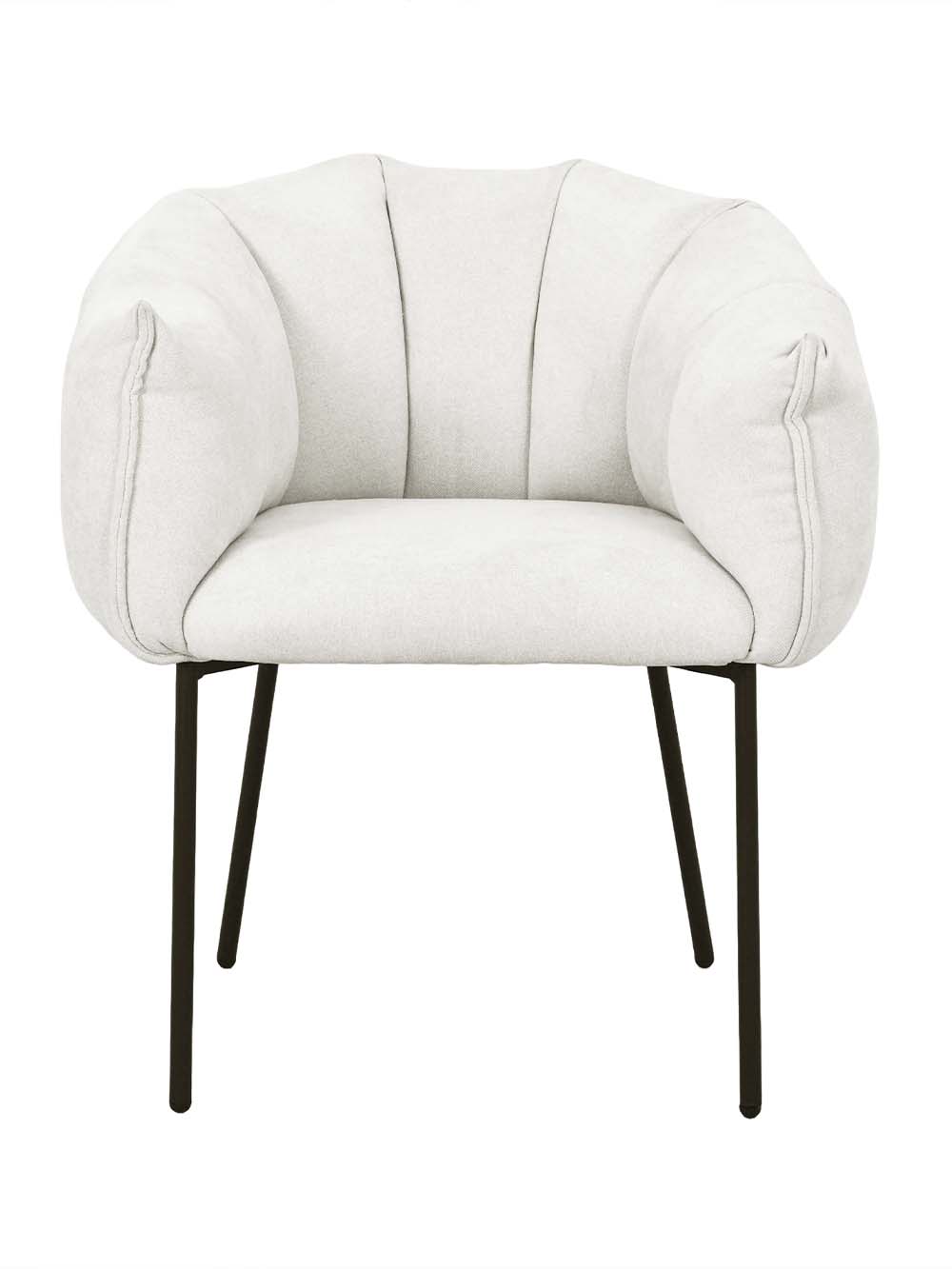 Valgomojo kėdė Arena – stilingas baldas, išsiskiriantis minkštu siluetu ir dekoratyviai segmentuotu atlošu. Kreminės spalvos šenilinis audinys suteikia jaukumo, o juodas plieninis kojų rėmas pabrėžia modernų charakterį. Apgaubiantis atlošas ir minkšta sėdimoji dalis užtikrina komfortą. Puikus pasirinkimas tiek kasdieniams pietums, tiek ilgesniems vakarams prie stalo.