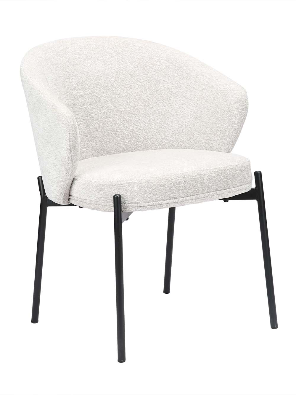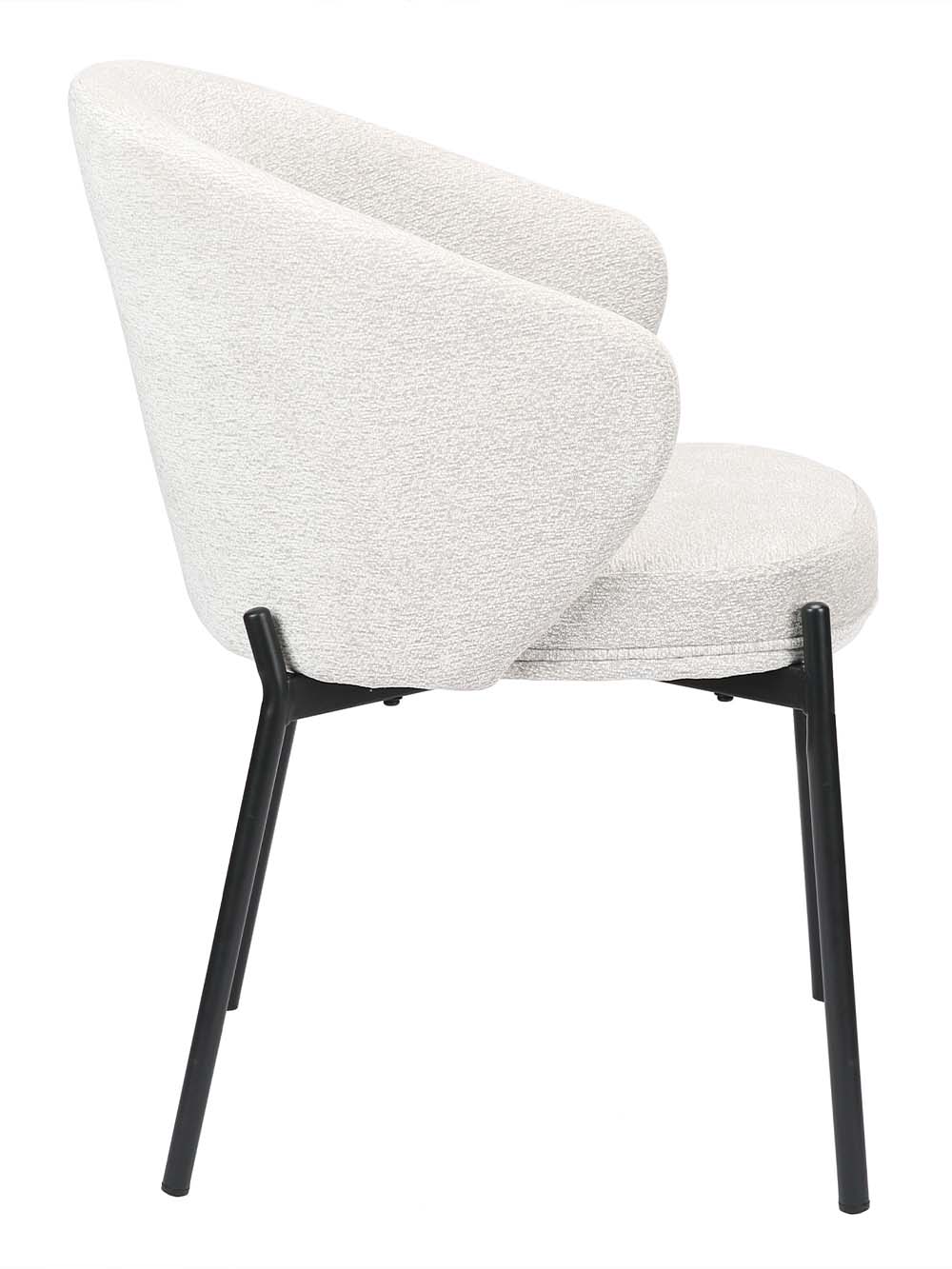 Valgomojo kėdė Aston pasižymi švelnių formų, moderniu dizainu, kuris interjerui suteikia jaukumo ir lengvumo. Šviesiai pilkos spalvos šenilinis audinys subtiliai dera su juodu metaliniu kojų rėmu, pabrėžiančiu stabilumą ir šiuolaikišką charakterį. Apgaubiantis atlošas ir minkšta sėdimoji dalis užtikrina patogų sėdėjimą tiek trumpiems, tiek ilgesniems pasisėdėjimams prie stalo.