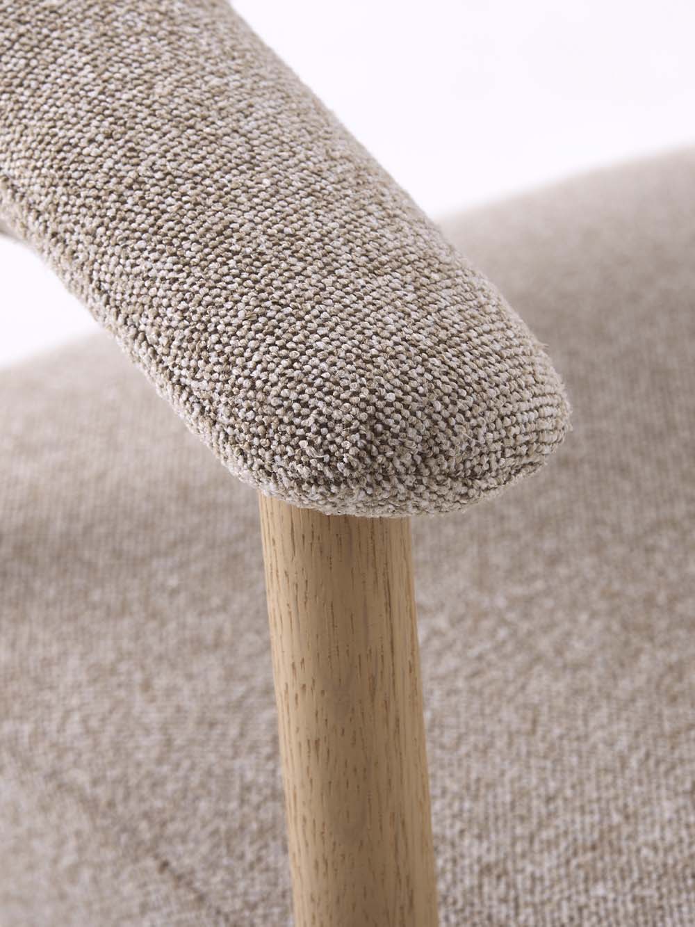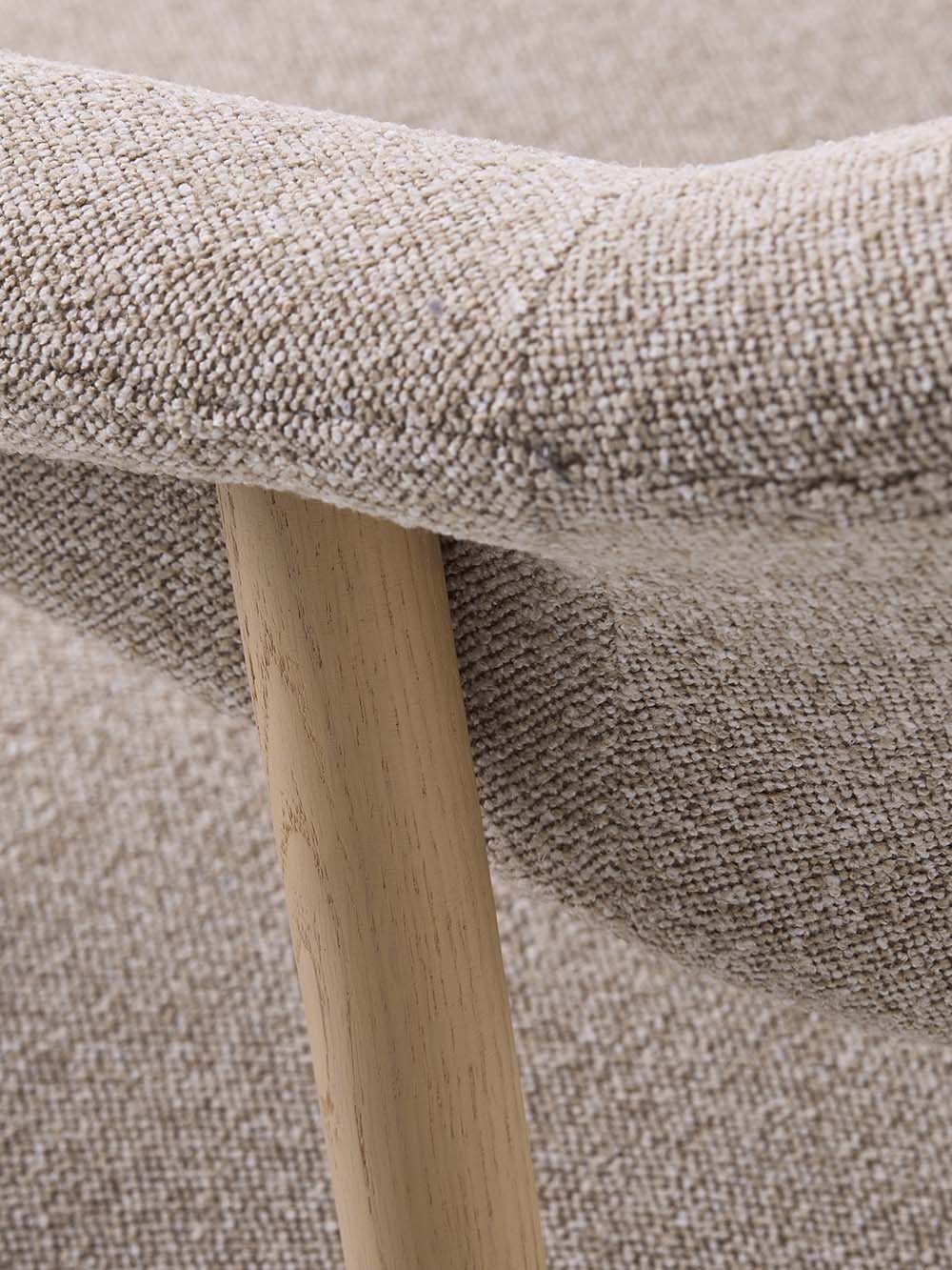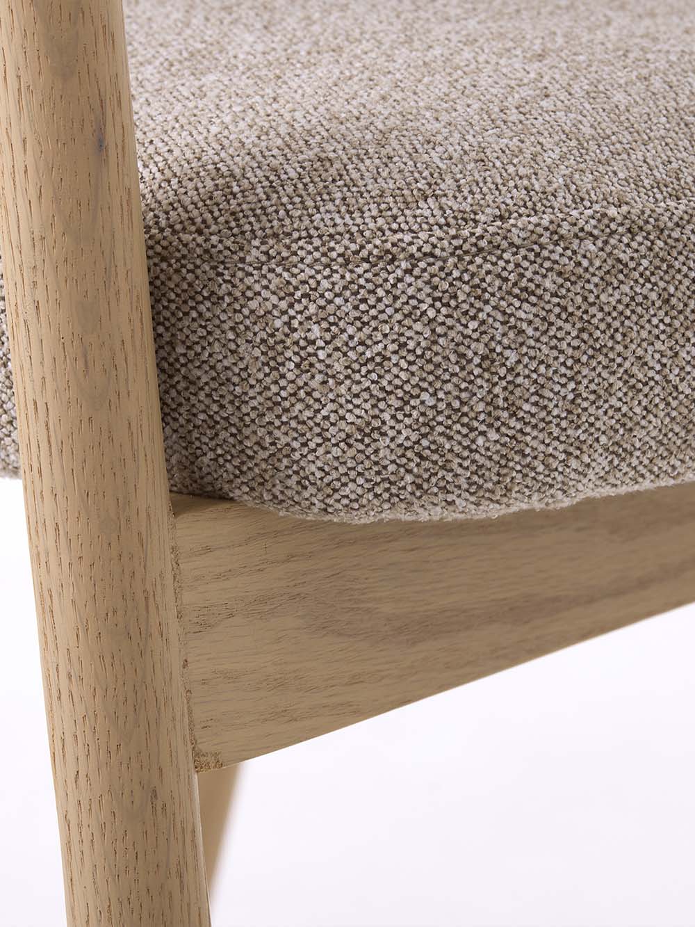 Valgomojo kėdė Cosner – tai stilingas ir subtilus baldas, spinduliuojantis lengvumu bei natūralumu. Smėlio spalvos audinys puikiai dera su balinto ąžuolo masyvo rėmu, sukuriant šviesų ir harmoningą derinį. Apvalintas atlošas bei minkšta sėdimoji dalis užtikrina patogumą tiek kasdieniam naudojimui, tiek ilgesniems vakarams prie stalo. Idealiai tinka skandinaviško, modernaus ar minimalistinio interjero erdvėms.