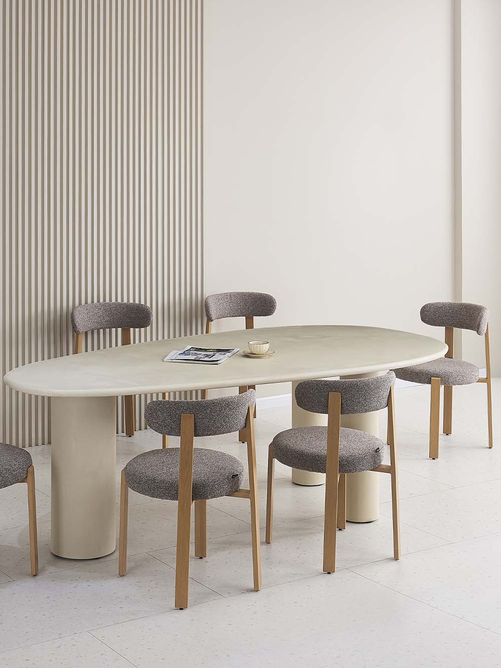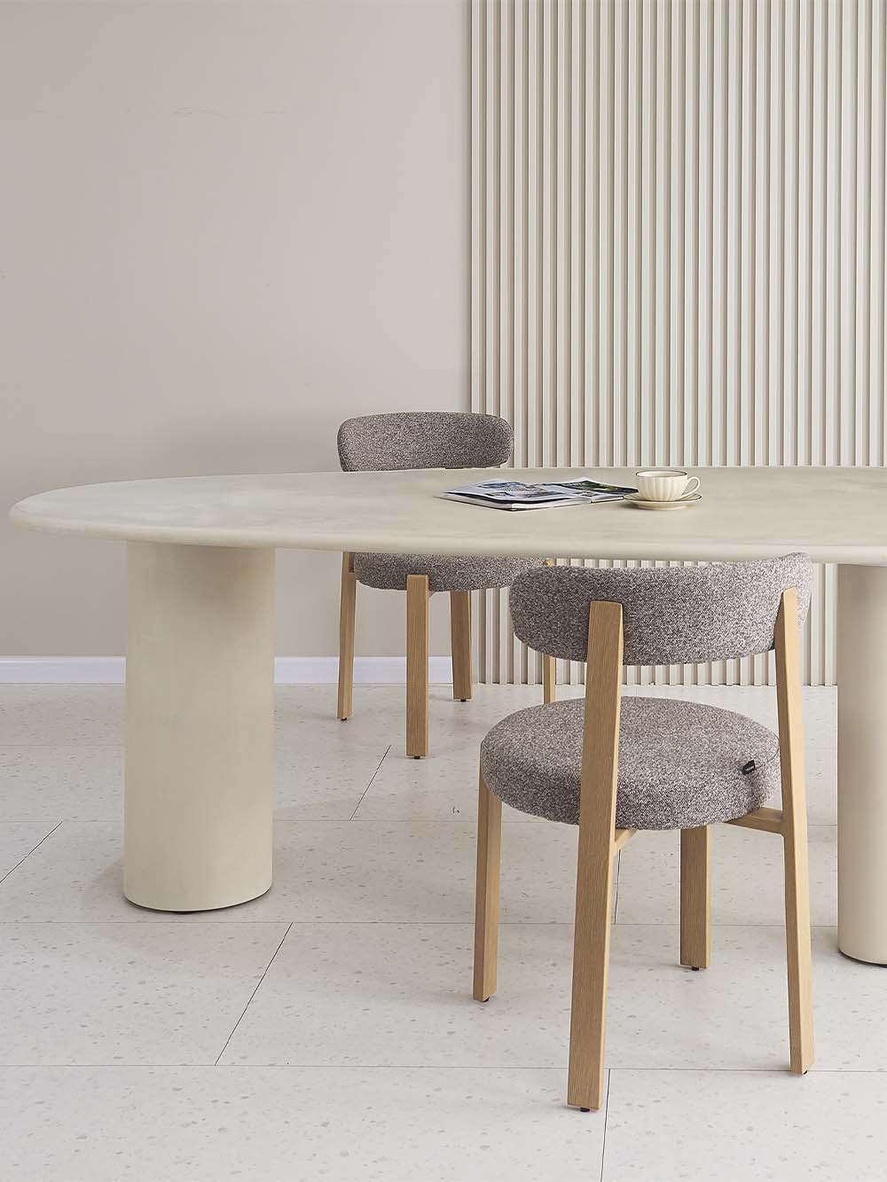 Apie audinį: Adventure – šiuolaikiškas bouclé tipo audinys, pasižymintis subtiliai nelygia, minkšta ir plastiška tekstūra. Jo paviršius sukuria išraiškingą, melanžo efektą, kuris suteikia interjerui šilumos ir jaukumo. Dėl didelio tankio ir tvirto audimo audinys išsiskiria ilgaamžiškumu bei atsparumu dėvėjimuisi, o jo priežiūra paprasta ir patogi kasdieniam naudojimui.