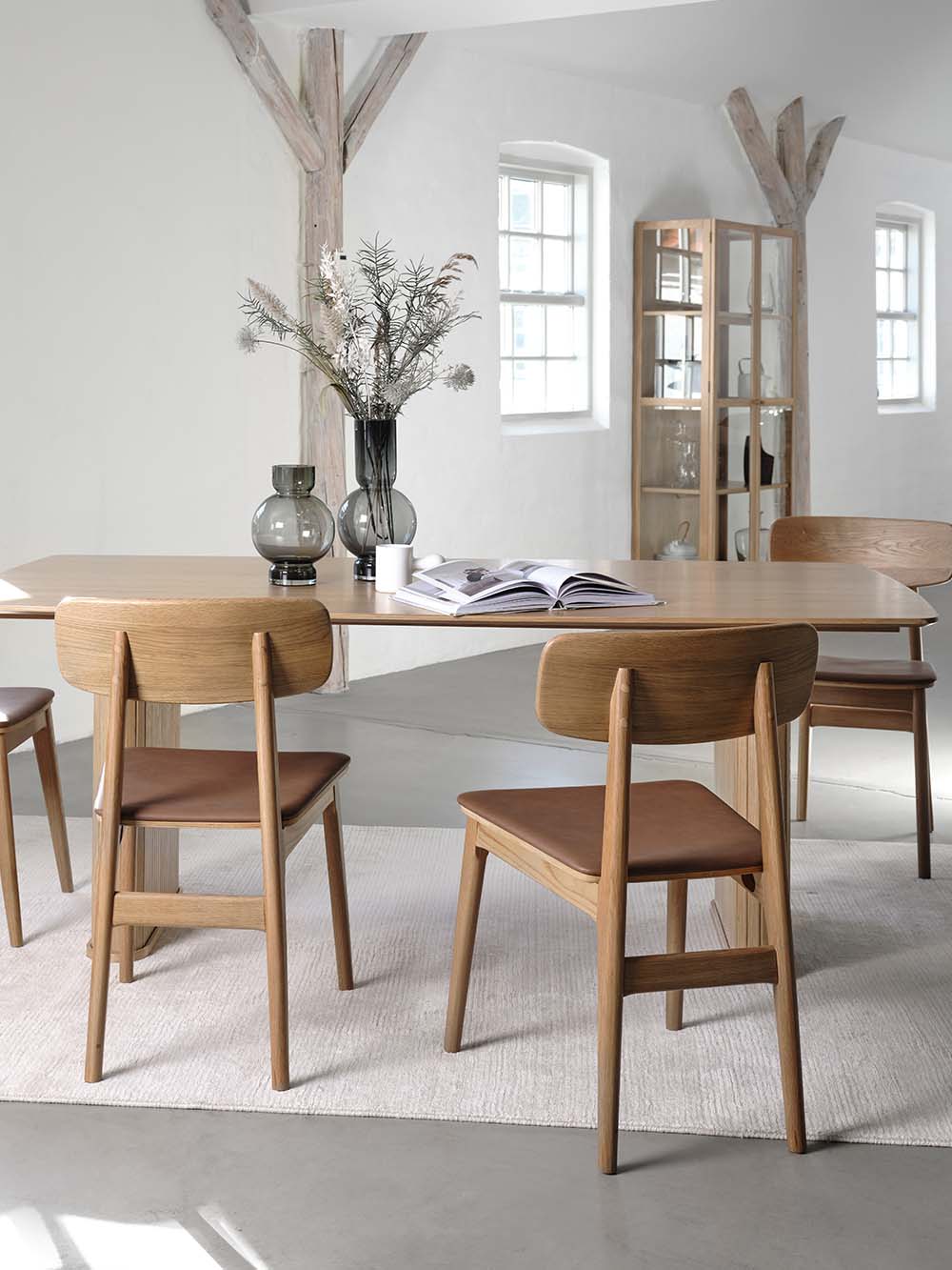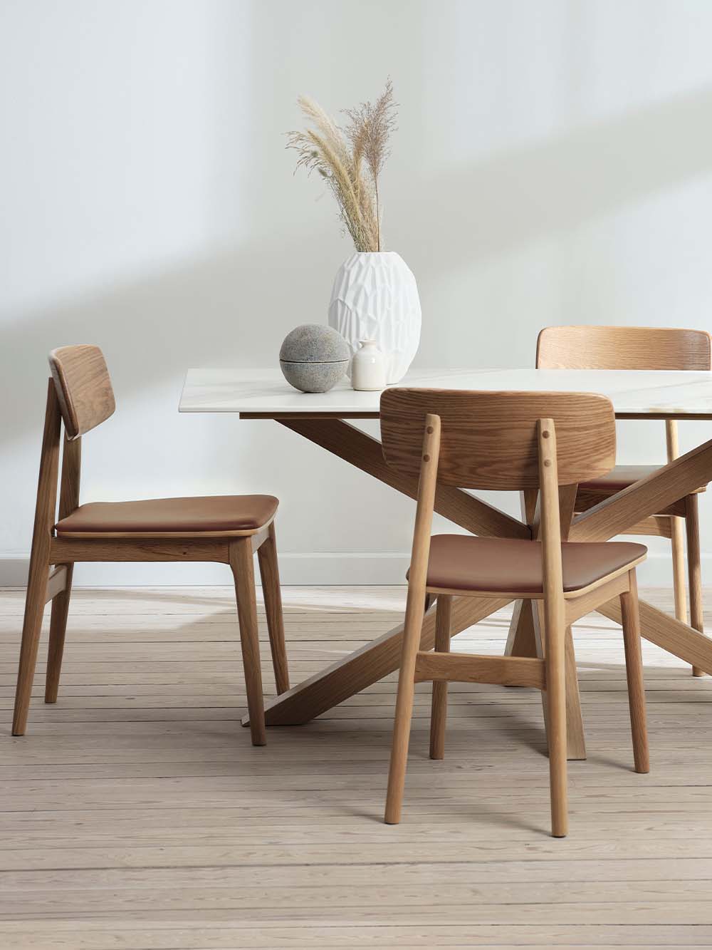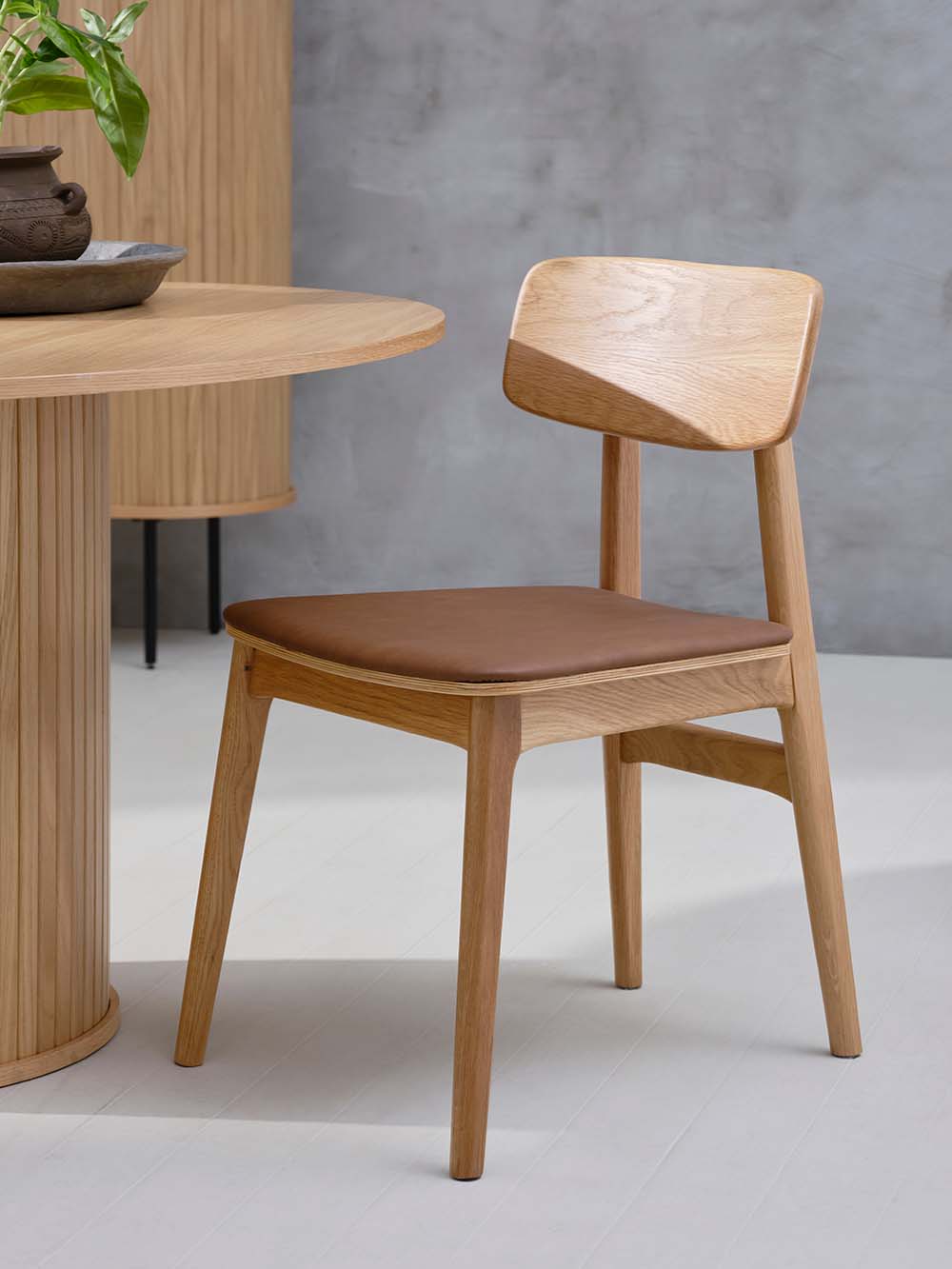 Valgomojo kėdė Lenvin – tai natūralaus grožio ir skandinaviško minimalizmo derinys. Rudos spalvos sėdimoji dalis puikiai dera su natūralaus ąžuolo kojomis, suteikdama jaukumo bei šilumos pojūtį interjere. Platus medinis atlošas užtikrina patogią atramą, o apvalintos formos suteikia švelnumo ir lengvumo. Ši kėdė puikiai tinka valgomojo ar virtuvės erdvėms, kur vertinamas natūralumas ir subtilus dizainas.