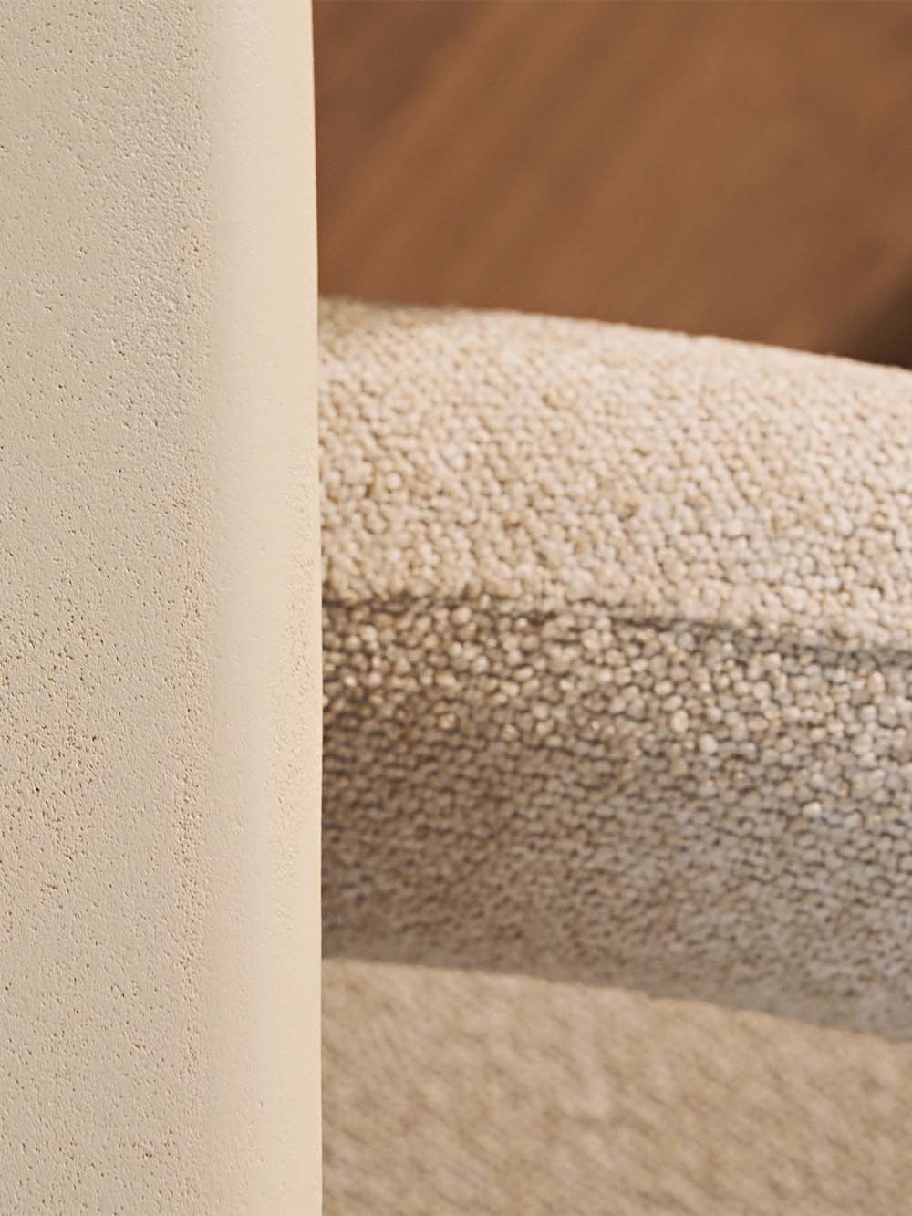 Apie audinį: Adventure – šiuolaikiškas bouclé tipo audinys, pasižymintis subtiliai nelygia, minkšta ir plastiška tekstūra. Jo paviršius sukuria išraiškingą, melanžo efektą, kuris suteikia interjerui šilumos ir jaukumo. Dėl didelio tankio ir tvirto audimo audinys išsiskiria ilgaamžiškumu bei atsparumu dėvėjimuisi, o jo priežiūra paprasta ir patogi kasdieniam naudojimui.