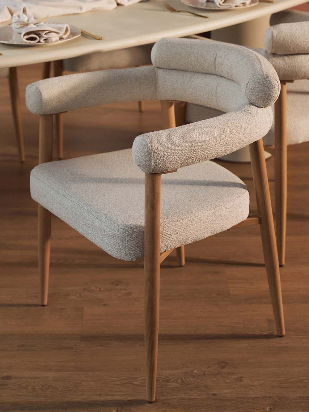 Valgomojo kėdė Loren, natūralaus ąžuolo/smėlio, boucle